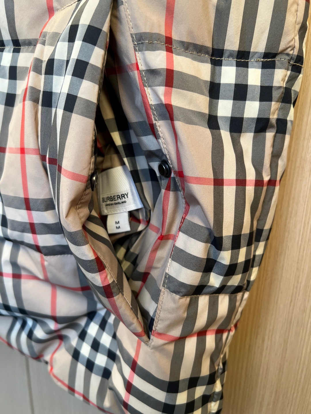 这款衣服是AAAAA 1:1 质量 (非常棒). 使用了和原版一模一样的材料. 商标部分也保持了和巴宝莉/Burberry一样. 图片拍摄是实物衣服拍摄, 您所收到的实物保证和我们图片一模一样.