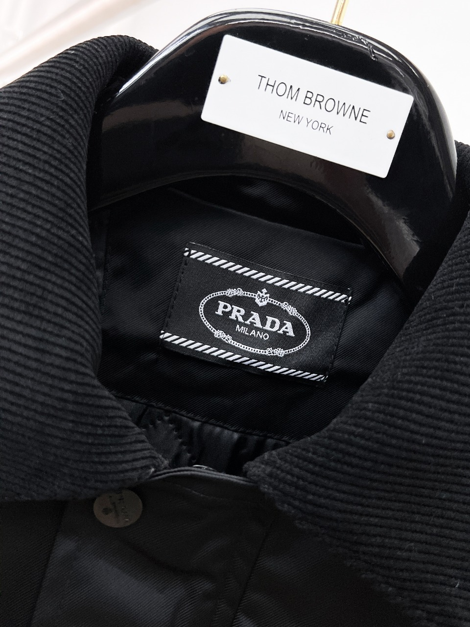 这款衣服是AAAAA 1:1 质量 (非常棒). 使用了和原版一模一样的材料. 商标部分也保持了和普拉达/Prada一样. 图片拍摄是实物衣服拍摄, 您所收到的实物保证和我们图片一模一样.