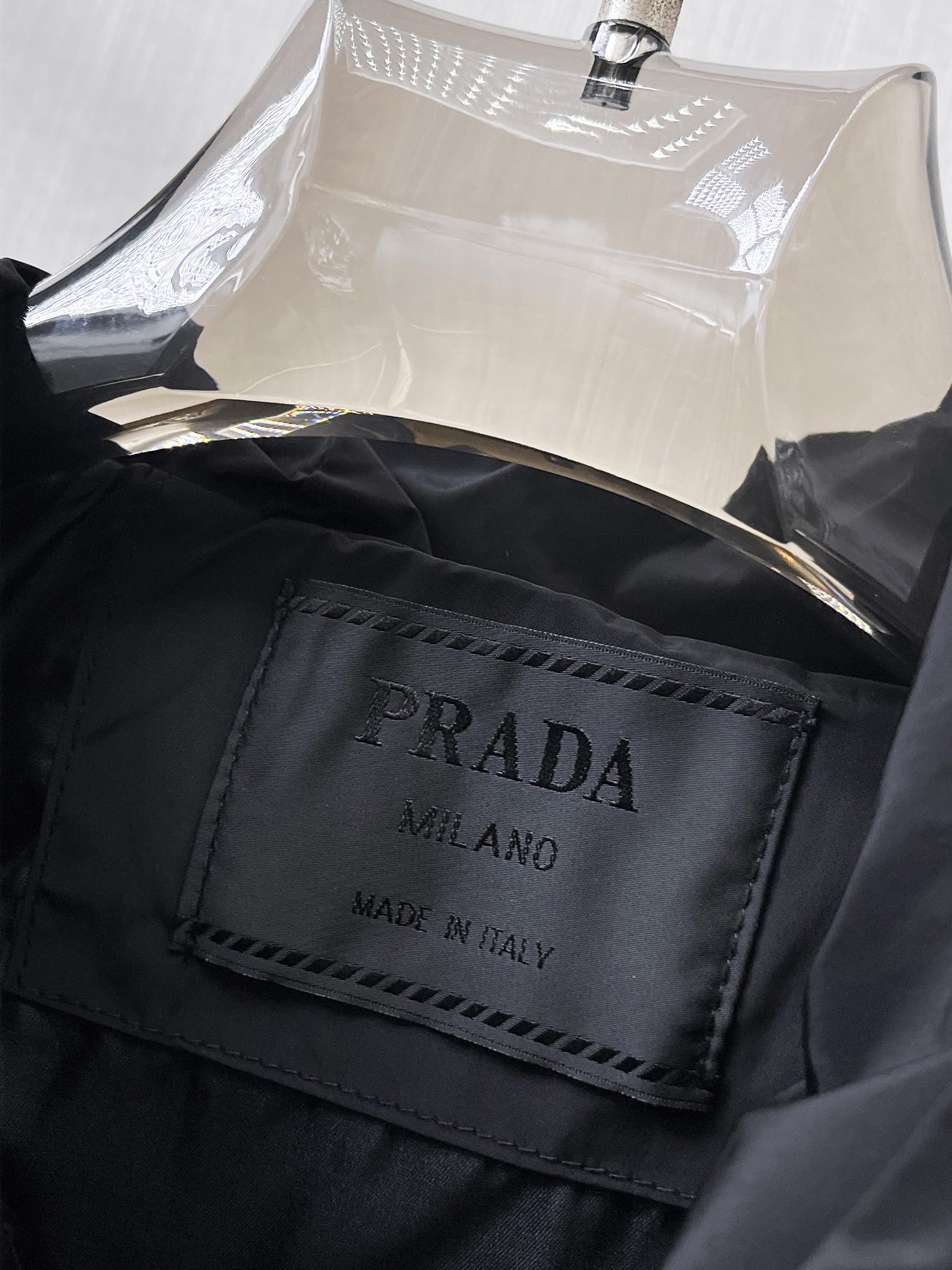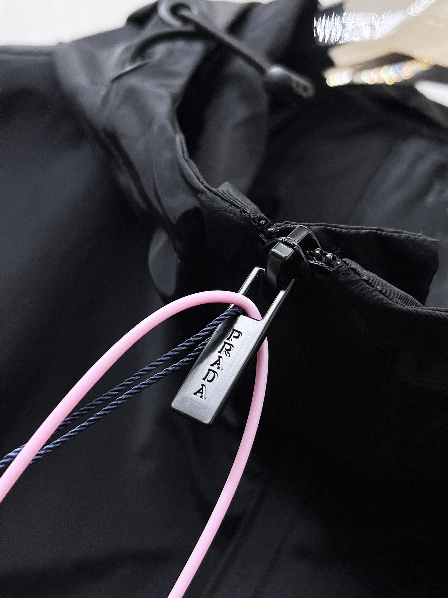 这款衣服是AAAAA 1:1 质量 (非常棒). 使用了和原版一模一样的材料. 商标部分也保持了和普拉达/Prada一样. 图片拍摄是实物衣服拍摄, 您所收到的实物保证和我们图片一模一样.