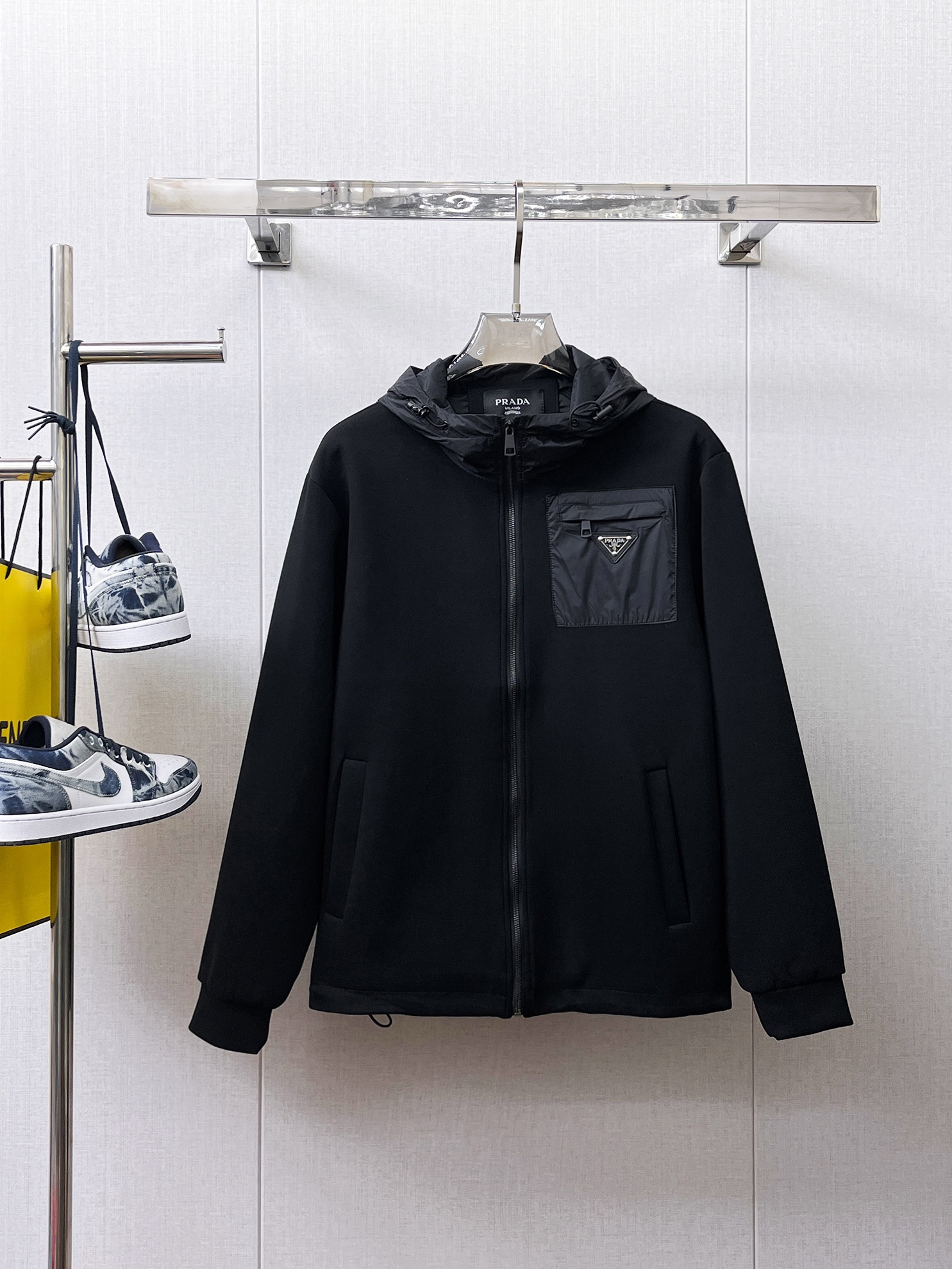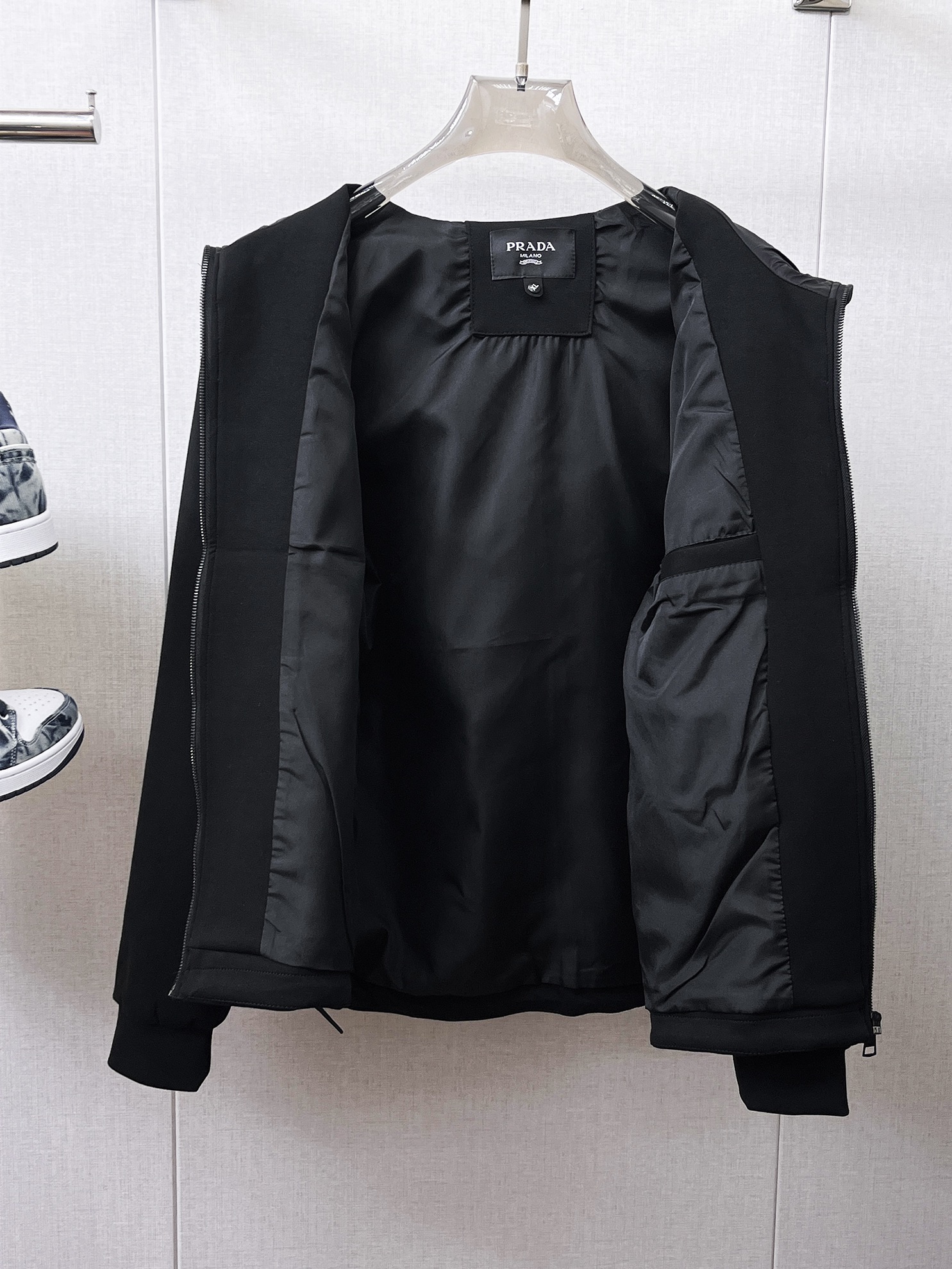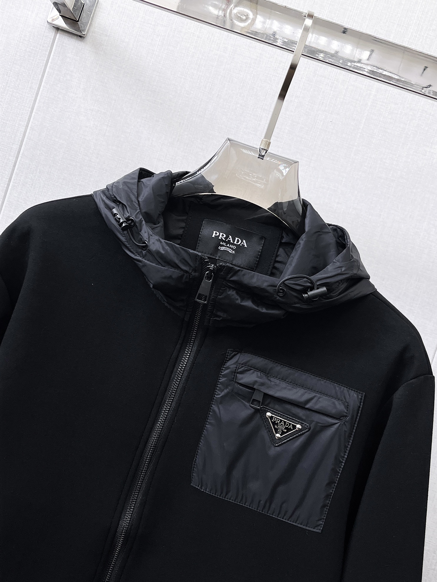 这款衣服是AAAAA 1:1 质量 (非常棒). 使用了和原版一模一样的材料. 商标部分也保持了和普拉达/Prada一样. 图片拍摄是实物衣服拍摄, 您所收到的实物保证和我们图片一模一样.