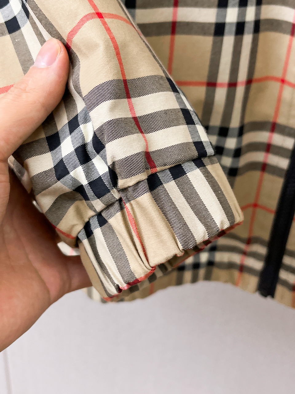 这款衣服是AAAAA 1:1 质量 (非常棒). 使用了和原版一模一样的材料. 商标部分也保持了和巴宝莉/Burberry一样. 图片拍摄是实物衣服拍摄, 您所收到的实物保证和我们图片一模一样.