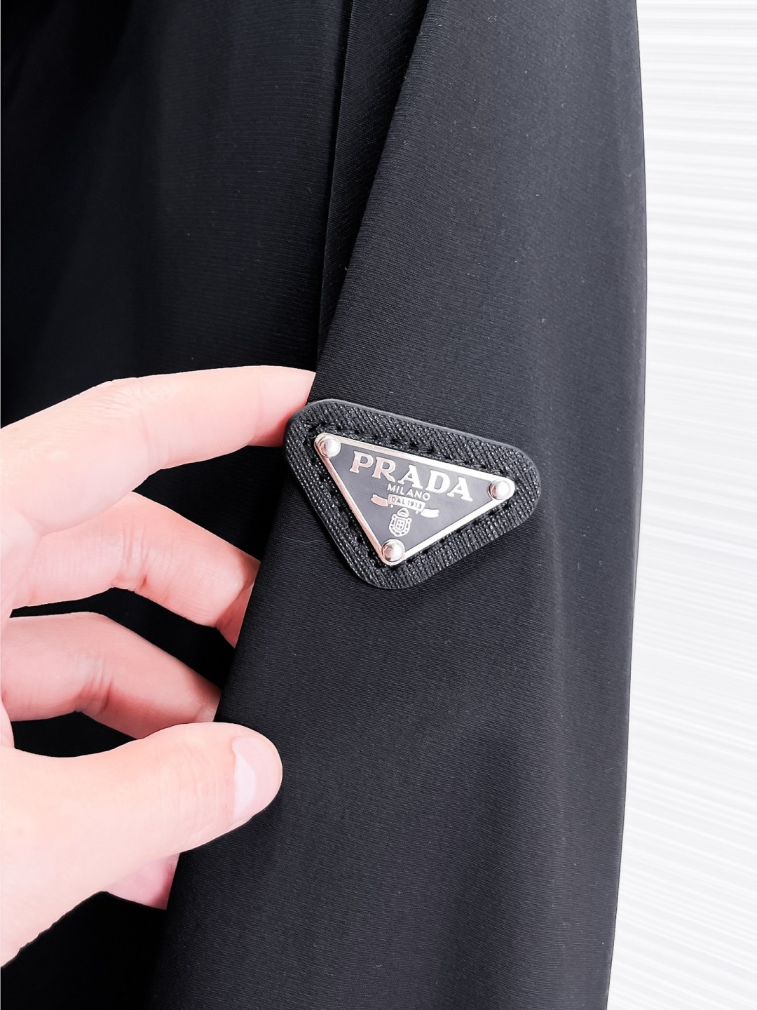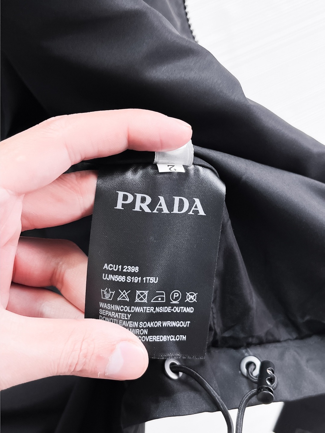 这款衣服是AAAAA 1:1 质量 (非常棒). 使用了和原版一模一样的材料. 商标部分也保持了和普拉达/Prada一样. 图片拍摄是实物衣服拍摄, 您所收到的实物保证和我们图片一模一样.