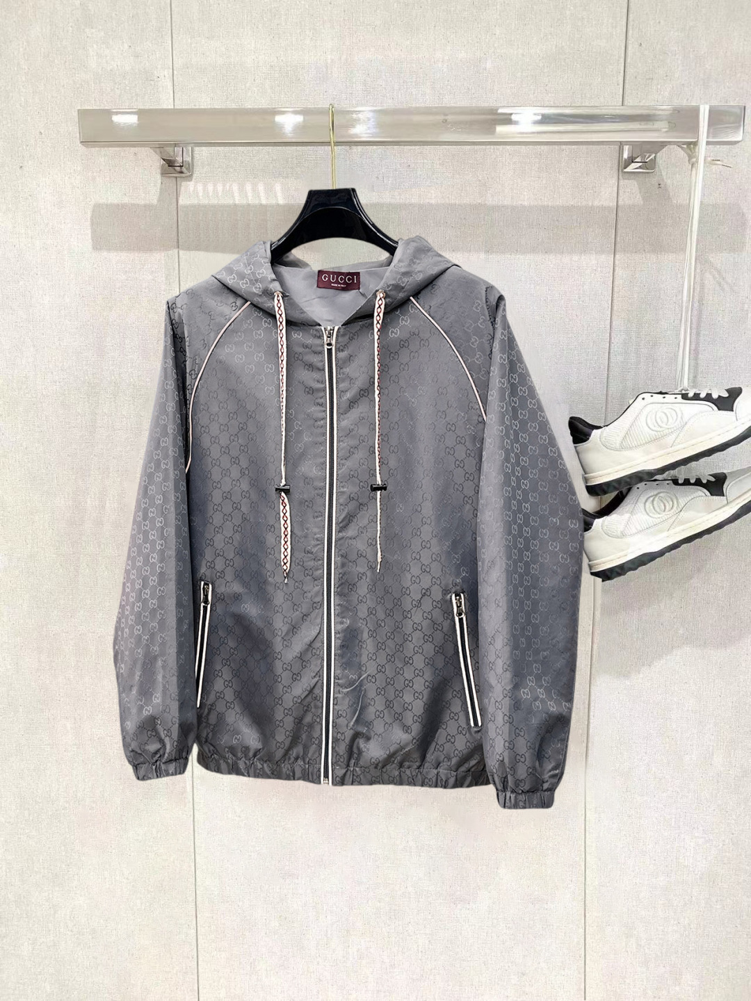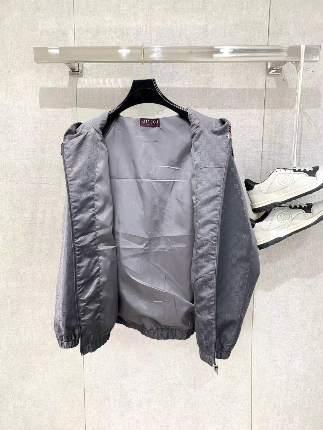 这款衣服是AAAAA 1:1 质量 (非常棒). 使用了和原版一模一样的材料. 商标部分也保持了和古奇/Gucci一样. 图片拍摄是实物衣服拍摄, 您所收到的实物保证和我们图片一模一样.