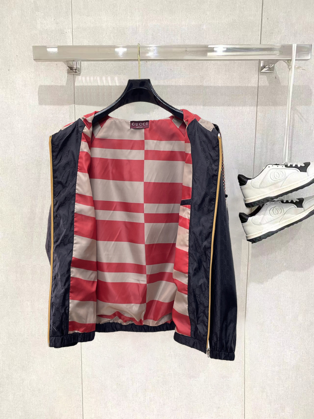 这款衣服是AAAAA 1:1 质量 (非常棒). 使用了和原版一模一样的材料. 商标部分也保持了和古奇/Gucci一样. 图片拍摄是实物衣服拍摄, 您所收到的实物保证和我们图片一模一样.