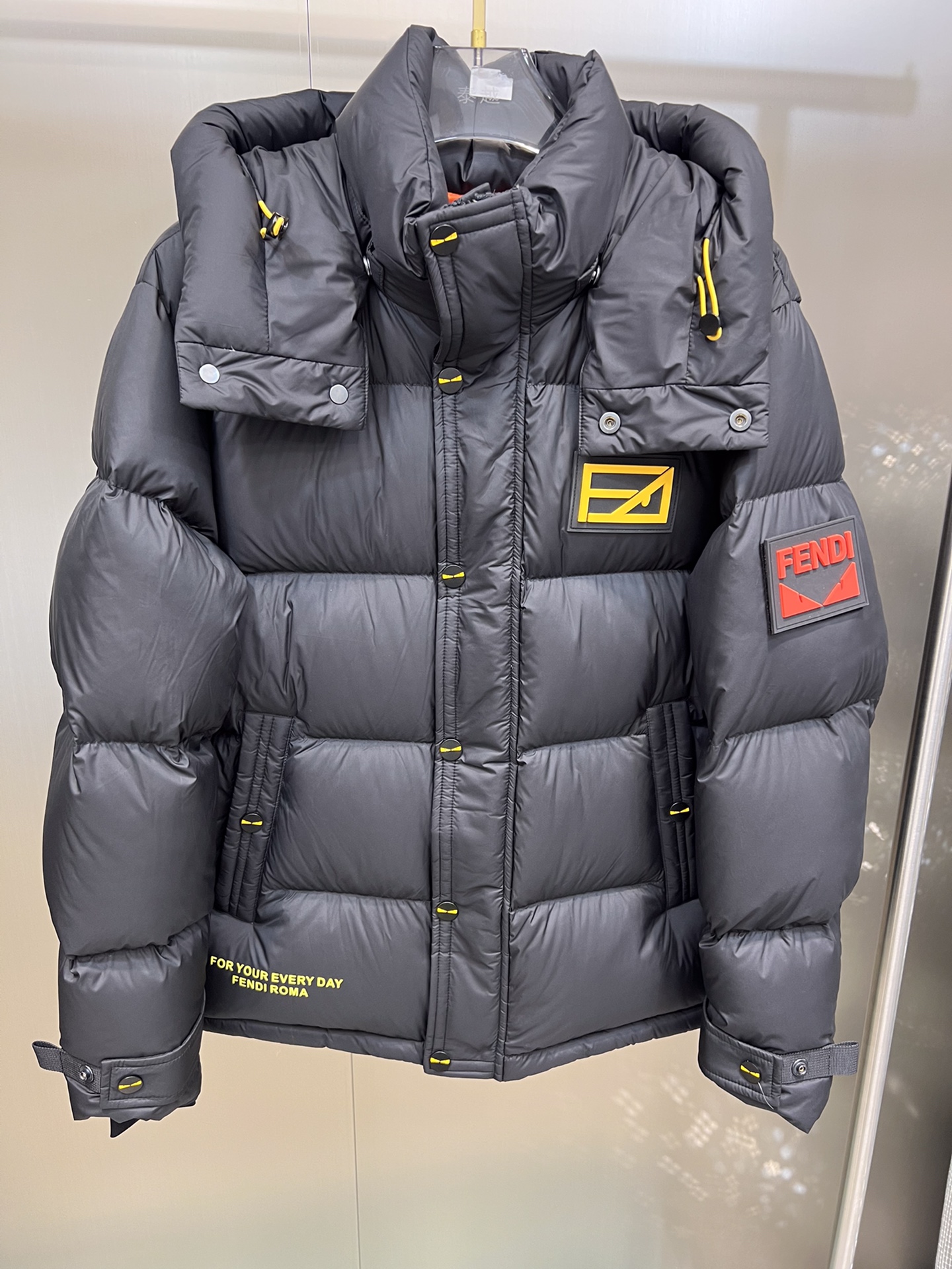 这款衣服是AAAAA 1:1 质量 (非常棒). 使用了和原版一模一样的材料. 商标部分也保持了和芬迪/Fendi一样. 图片拍摄是实物衣服拍摄, 您所收到的实物保证和我们图片一模一样.