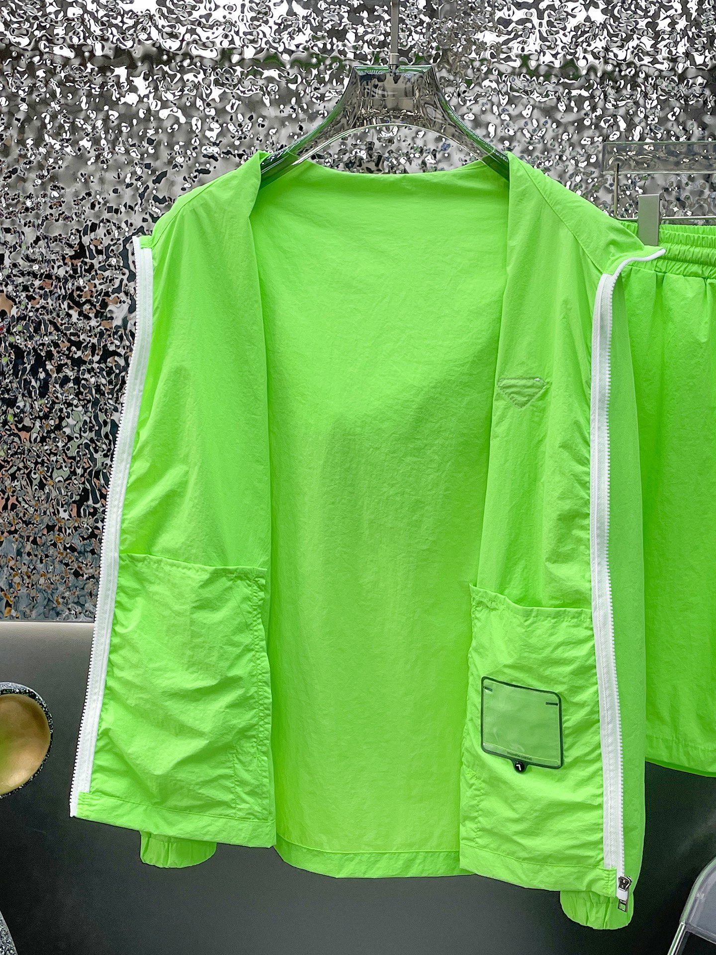 这款衣服是AAAAA 1:1 质量 (非常棒). 使用了和原版一模一样的材料. 商标部分也保持了和普拉达/Prada一样. 图片拍摄是实物衣服拍摄, 您所收到的实物保证和我们图片一模一样.