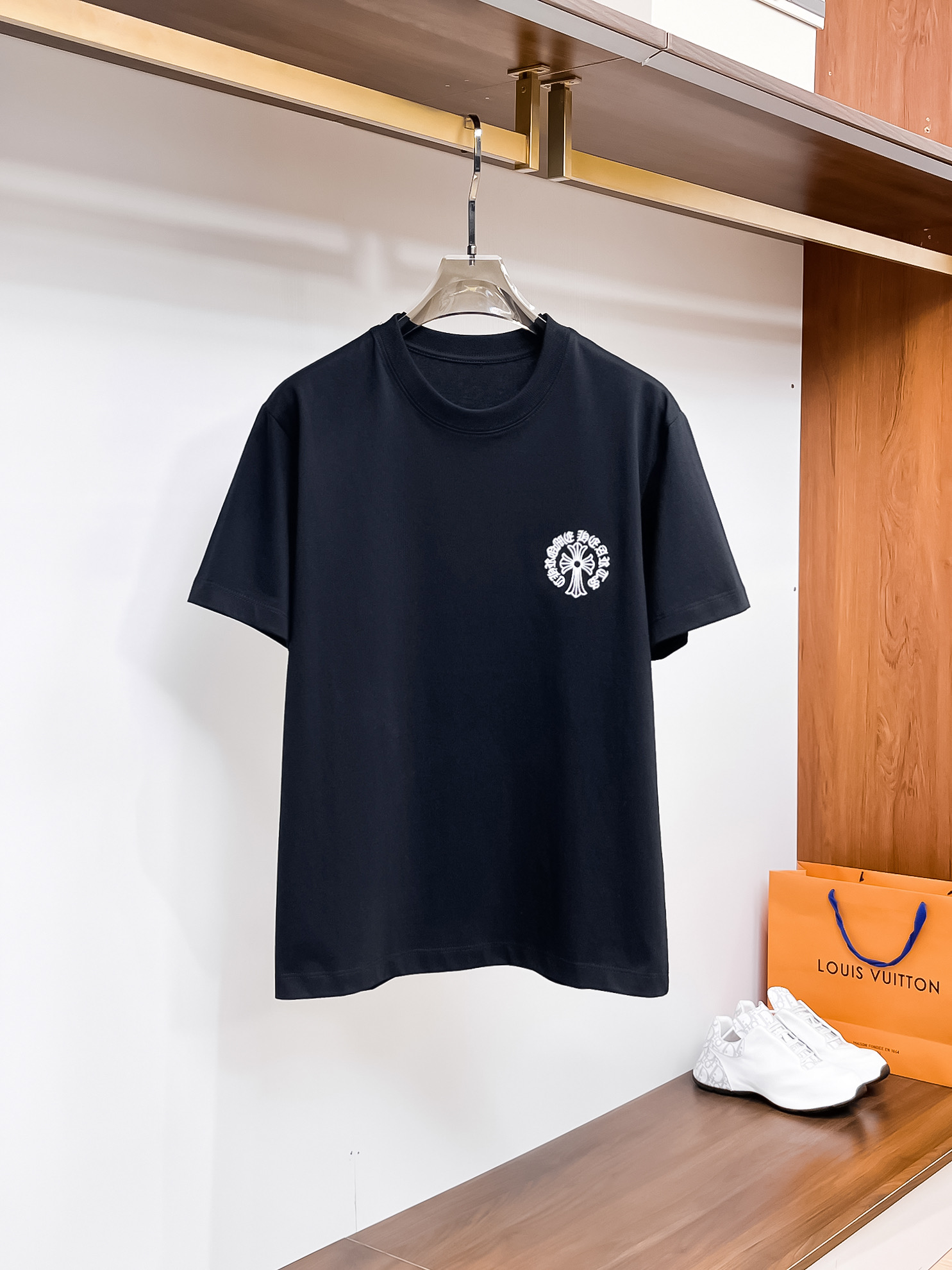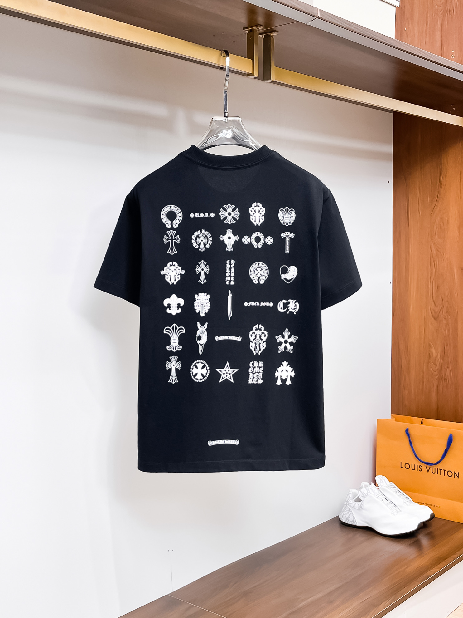这款衣服是AAAAA 1:1 质量 (非常棒). 使用了和原版一模一样的材料. 商标部分也保持了和克罗心/Chrome Hearts一样. 图片拍摄是实物衣服拍摄, 您所收到的实物保证和我们图片一模一样.