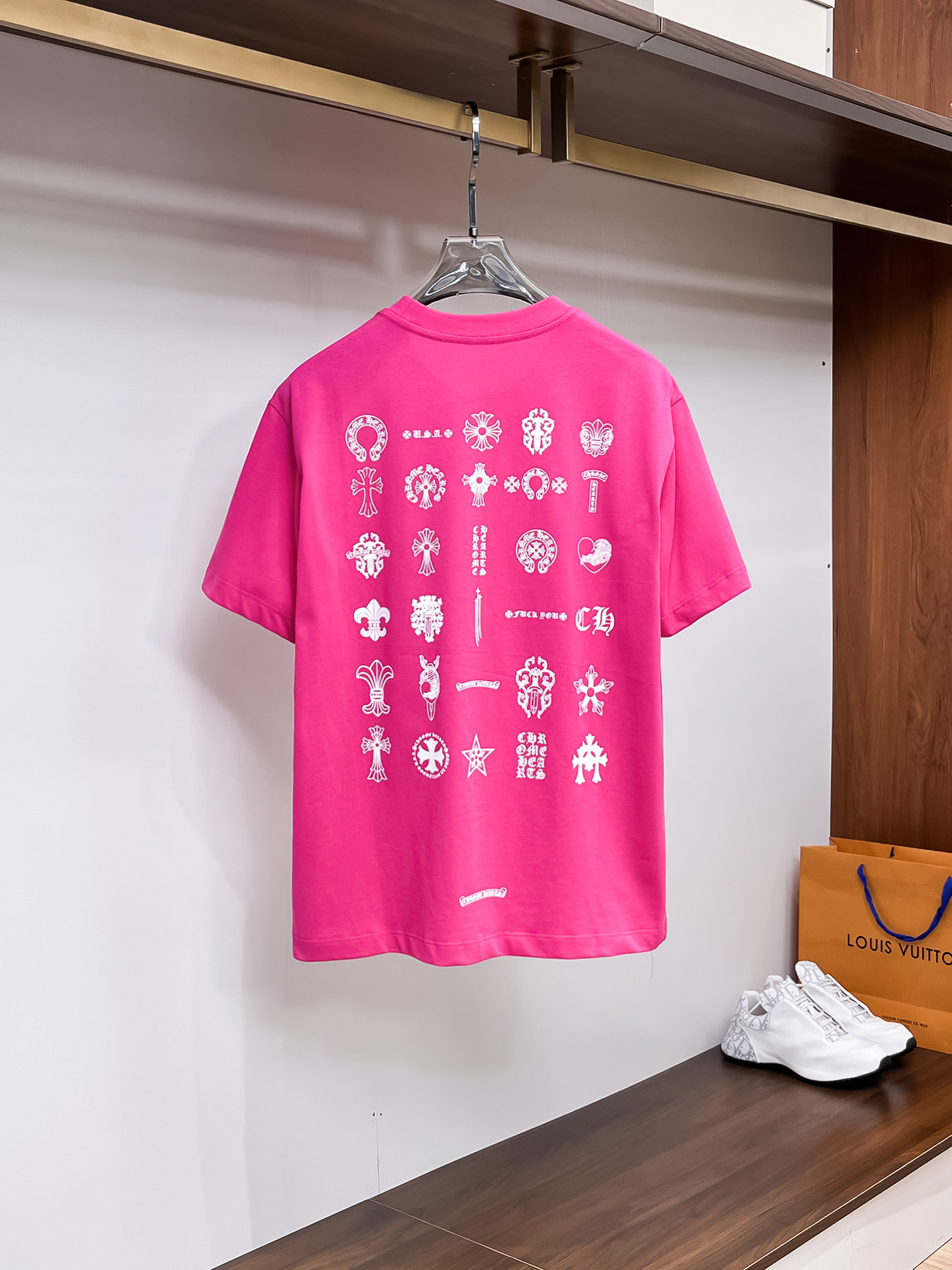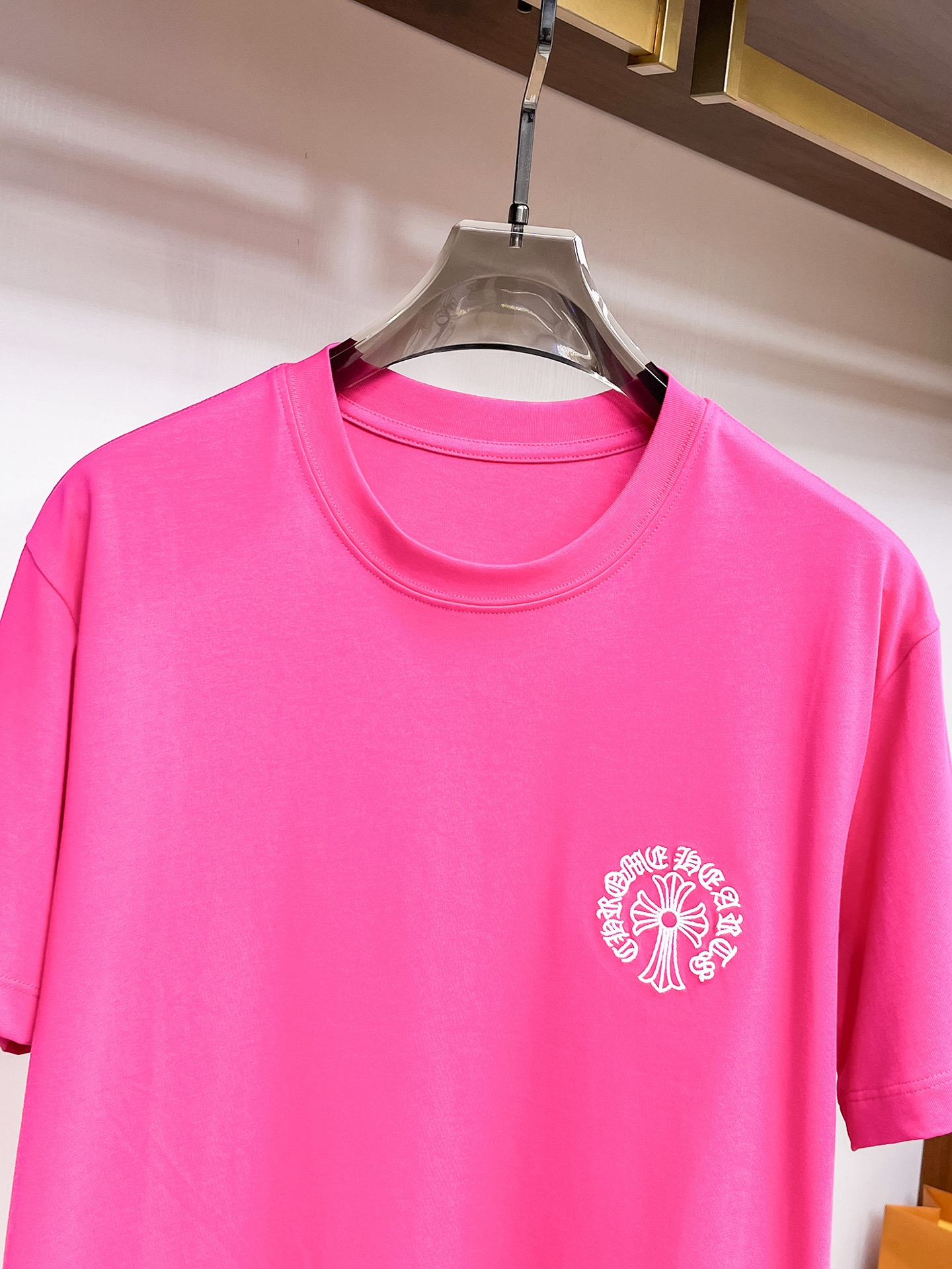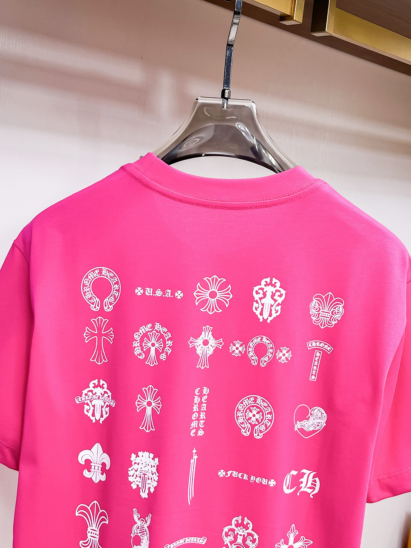 这款衣服是AAAAA 1:1 质量 (非常棒). 使用了和原版一模一样的材料. 商标部分也保持了和克罗心/Chrome Hearts一样. 图片拍摄是实物衣服拍摄, 您所收到的实物保证和我们图片一模一样.