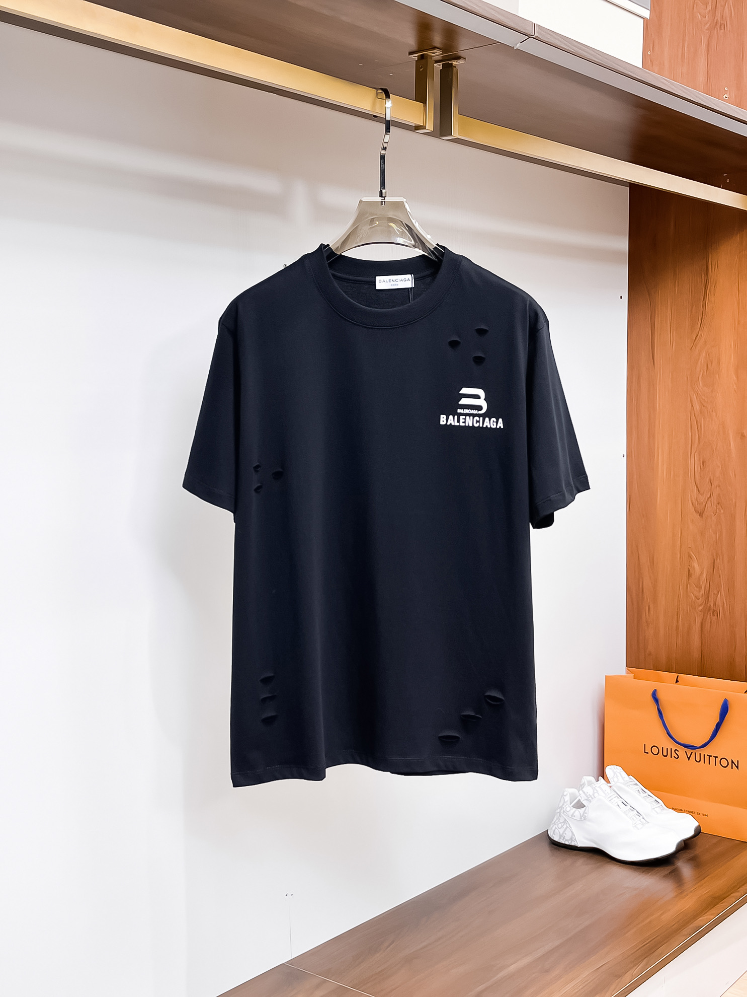 这款衣服是AAAAA 1:1 质量 (非常棒). 使用了和原版一模一样的材料. 商标部分也保持了和巴黎世家/Balenciaga一样. 图片拍摄是实物衣服拍摄, 您所收到的实物保证和我们图片一模一样.