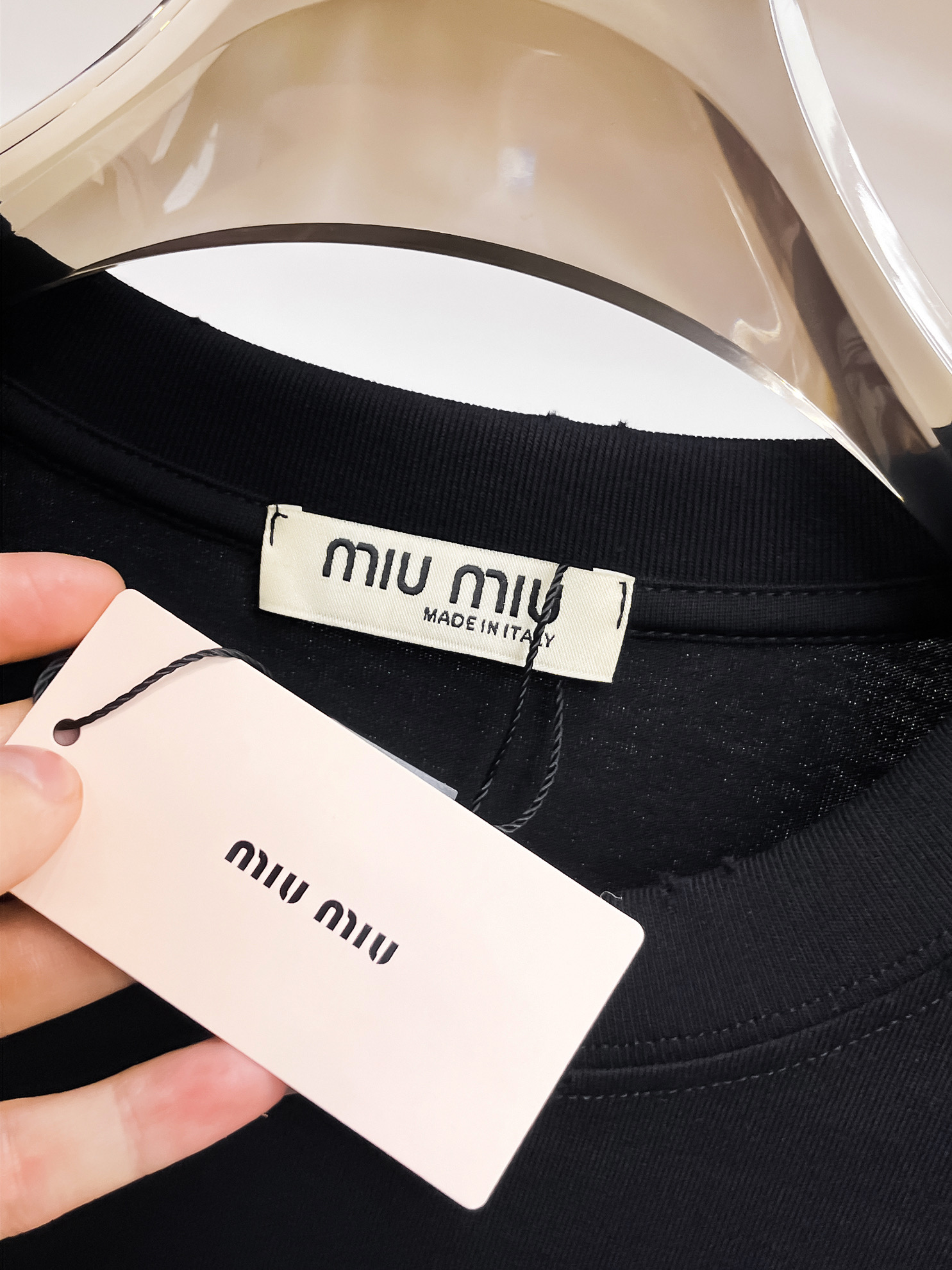 这款衣服是AAAAA 1:1 质量 (非常棒). 使用了和原版一模一样的材料. 商标部分也保持了和缪缪/Miu Miu一样. 图片拍摄是实物衣服拍摄, 您所收到的实物保证和我们图片一模一样.