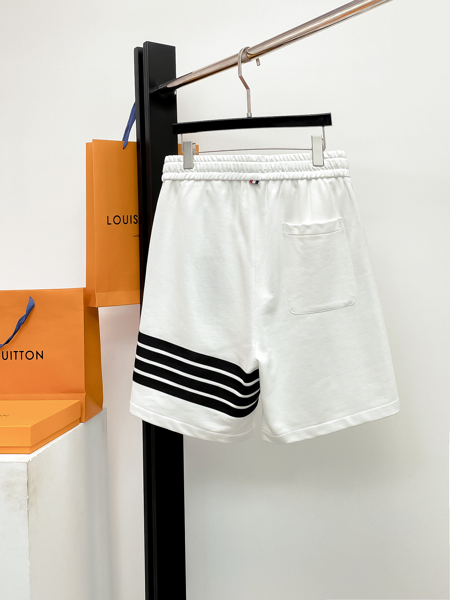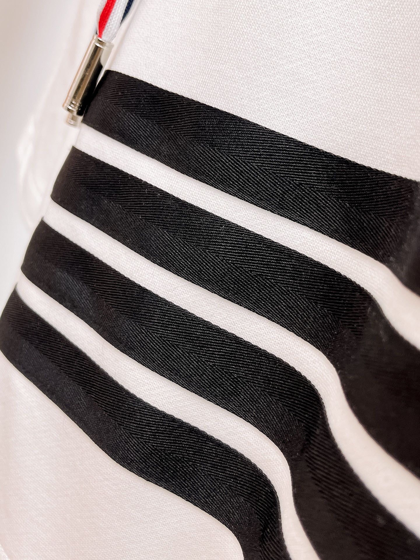 这款衣服是AAAAA 1:1 质量 (非常棒). 使用了和原版一模一样的材料. 商标部分也保持了和汤姆布朗/Thom Browne一样. 图片拍摄是实物衣服拍摄, 您所收到的实物保证和我们图片一模一样.