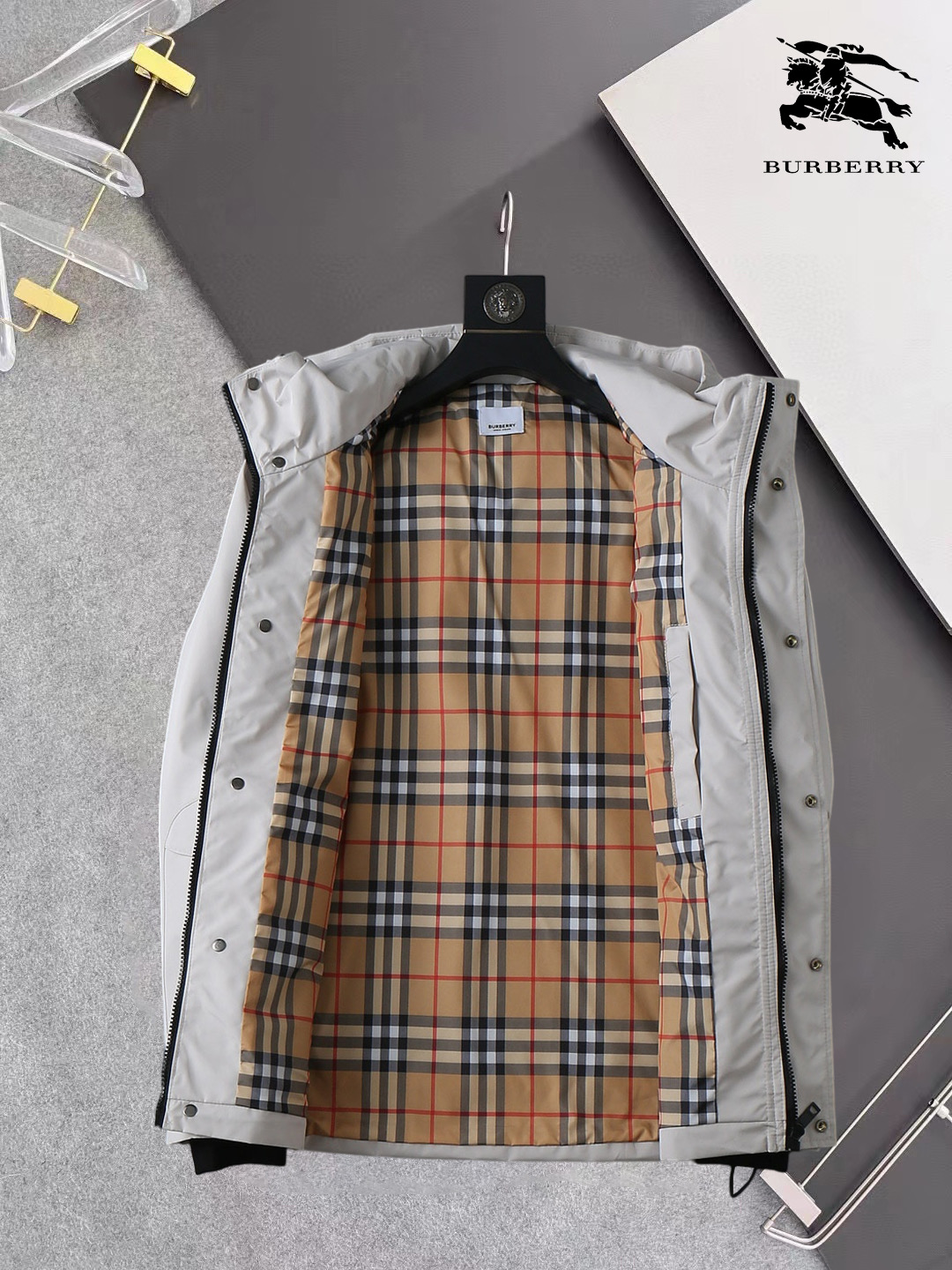 这款衣服是AAAAA 1:1 质量 (非常棒). 使用了和原版一模一样的材料. 商标部分也保持了和巴宝莉/Burberry一样. 图片拍摄是实物衣服拍摄, 您所收到的实物保证和我们图片一模一样.