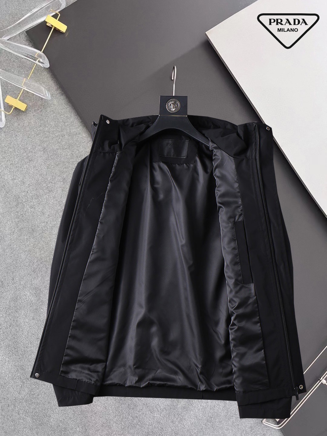这款衣服是AAAAA 1:1 质量 (非常棒). 使用了和原版一模一样的材料. 商标部分也保持了和普拉达/Prada一样. 图片拍摄是实物衣服拍摄, 您所收到的实物保证和我们图片一模一样.