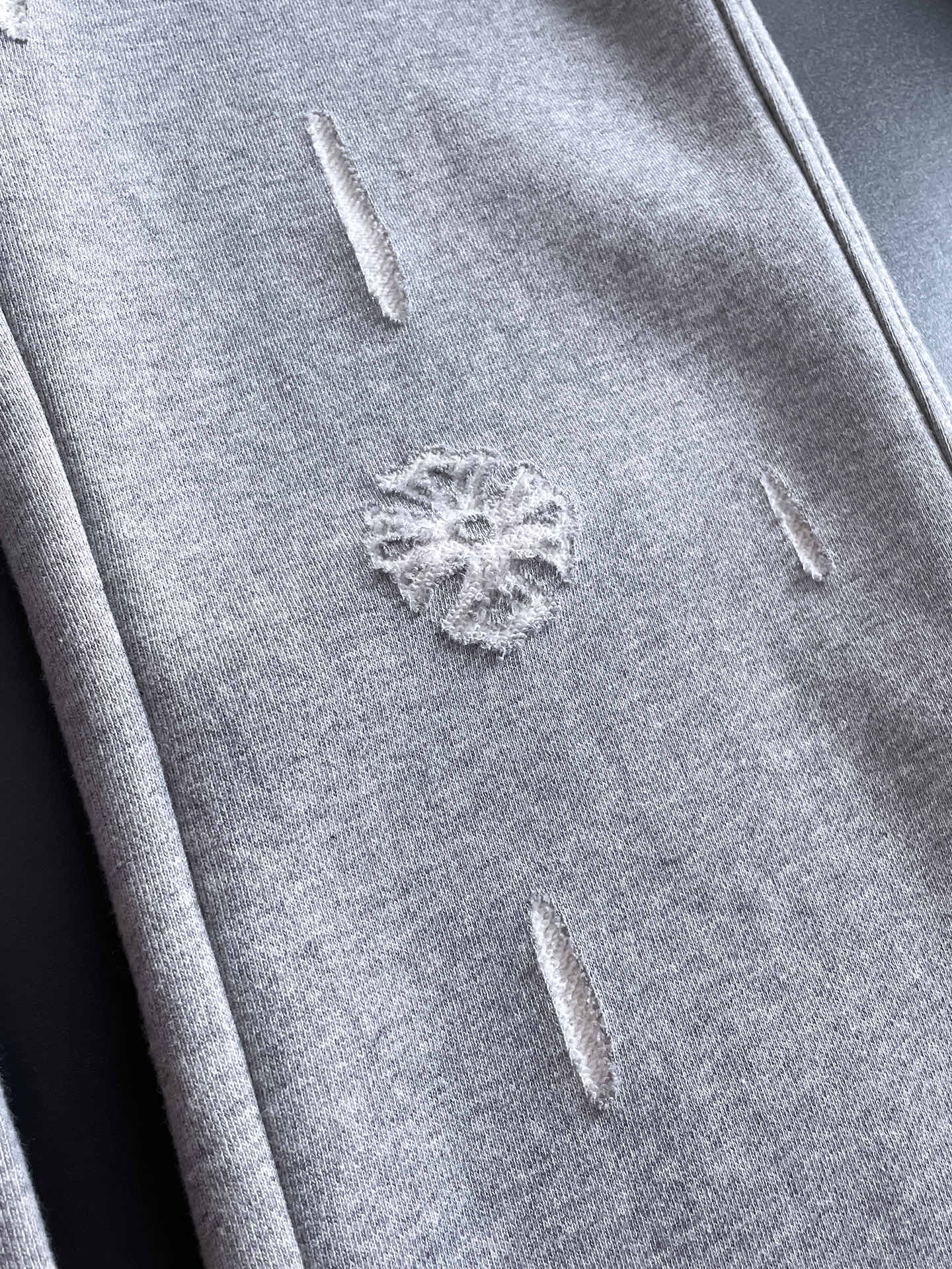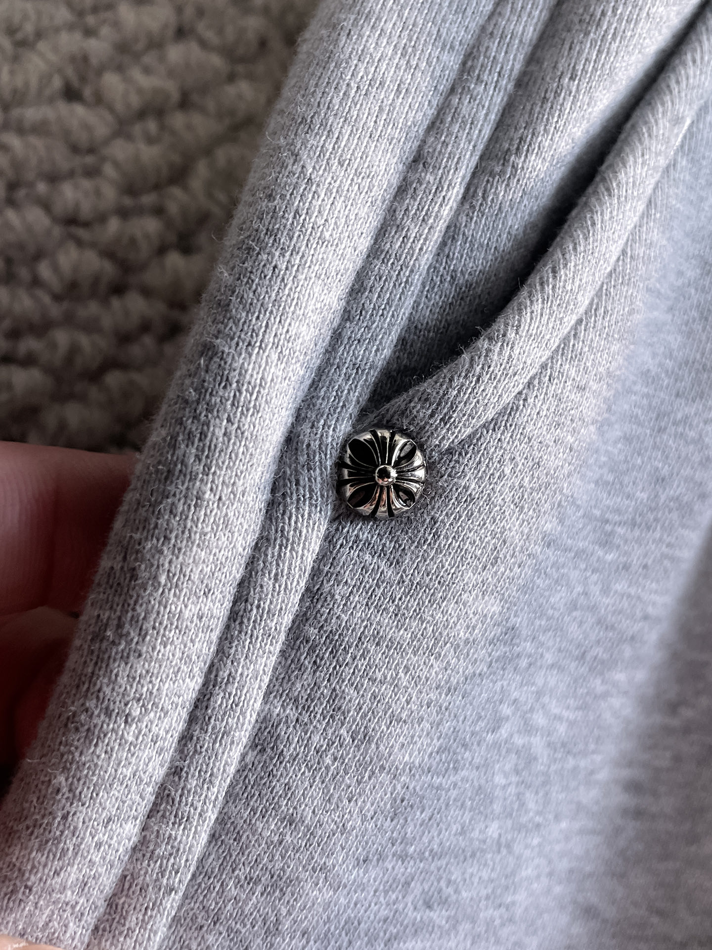 这款衣服是AAAAA 1:1 质量 (非常棒). 使用了和原版一模一样的材料. 商标部分也保持了和克罗心/Chrome Hearts一样. 图片拍摄是实物衣服拍摄, 您所收到的实物保证和我们图片一模一样.