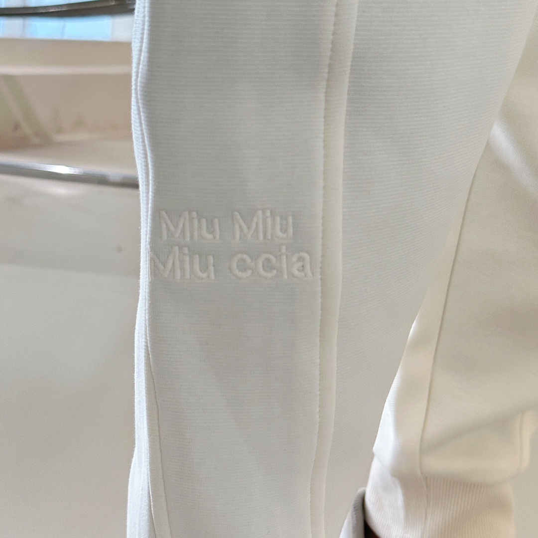 这款衣服是AAAAA 1:1 质量 (非常棒). 使用了和原版一模一样的材料. 商标部分也保持了和缪缪/Miu Miu一样. 图片拍摄是实物衣服拍摄, 您所收到的实物保证和我们图片一模一样.