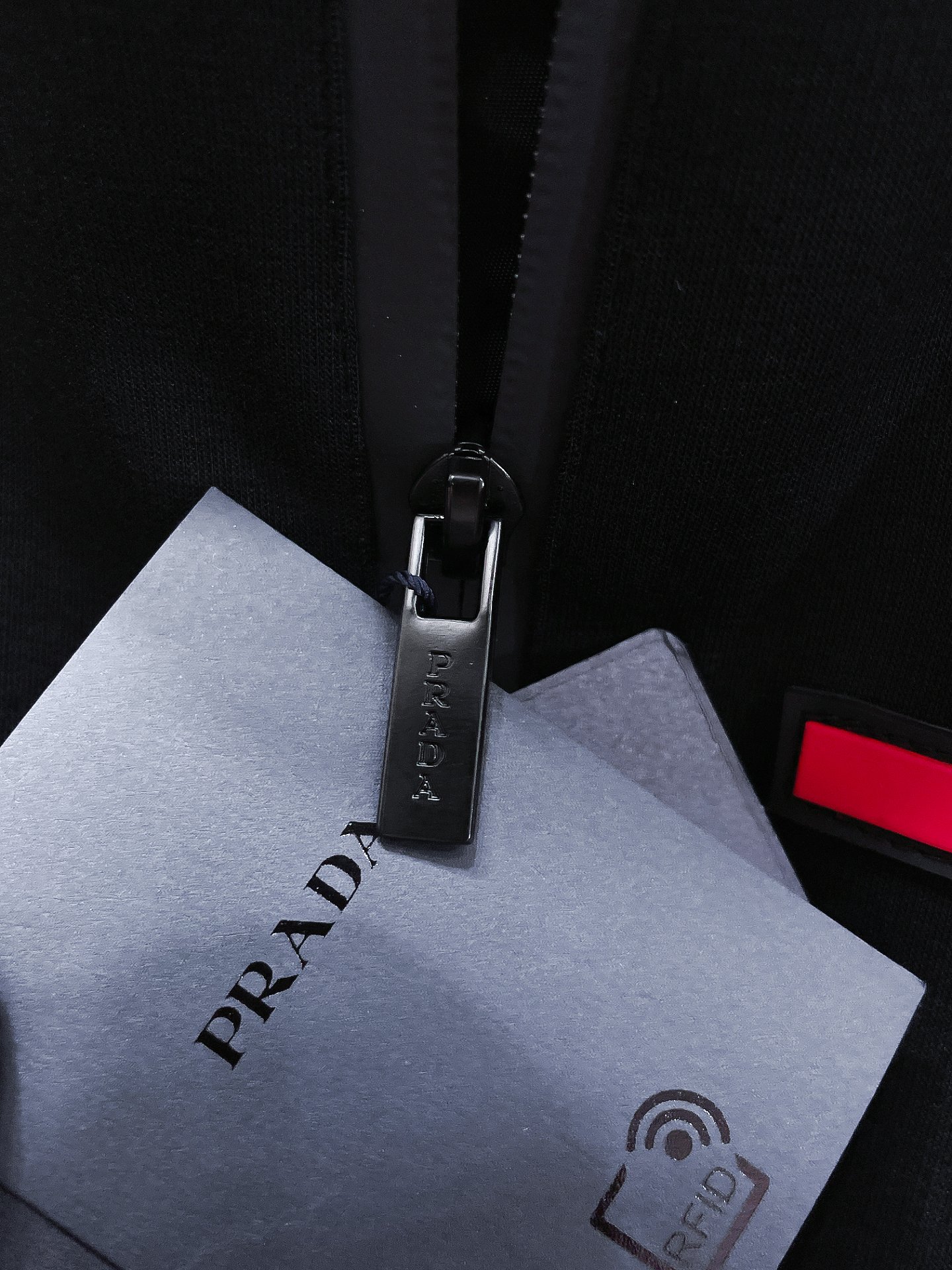 这款衣服是AAAAA 1:1 质量 (非常棒). 使用了和原版一模一样的材料. 商标部分也保持了和普拉达/Prada一样. 图片拍摄是实物衣服拍摄, 您所收到的实物保证和我们图片一模一样.