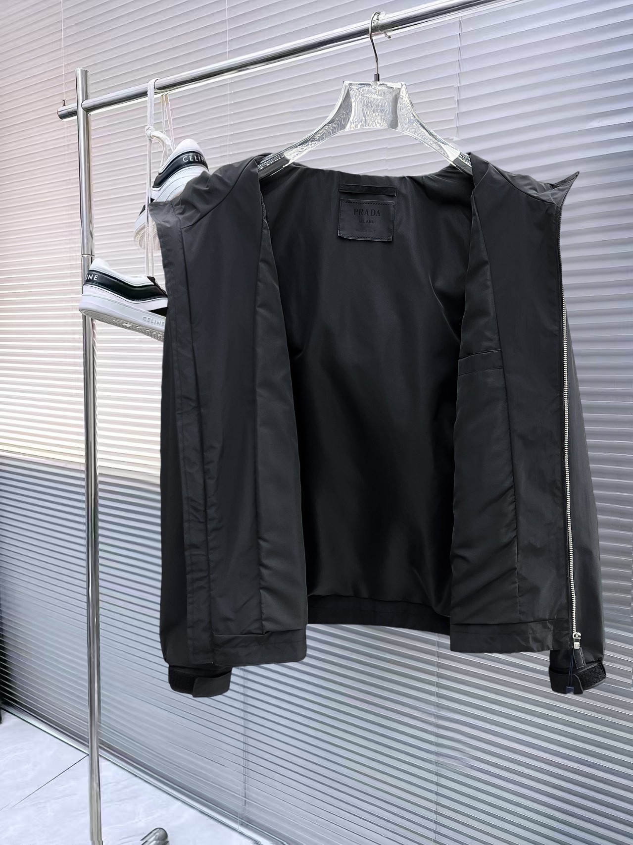这款衣服是AAAAA 1:1 质量 (非常棒). 使用了和原版一模一样的材料. 商标部分也保持了和普拉达/Prada一样. 图片拍摄是实物衣服拍摄, 您所收到的实物保证和我们图片一模一样.