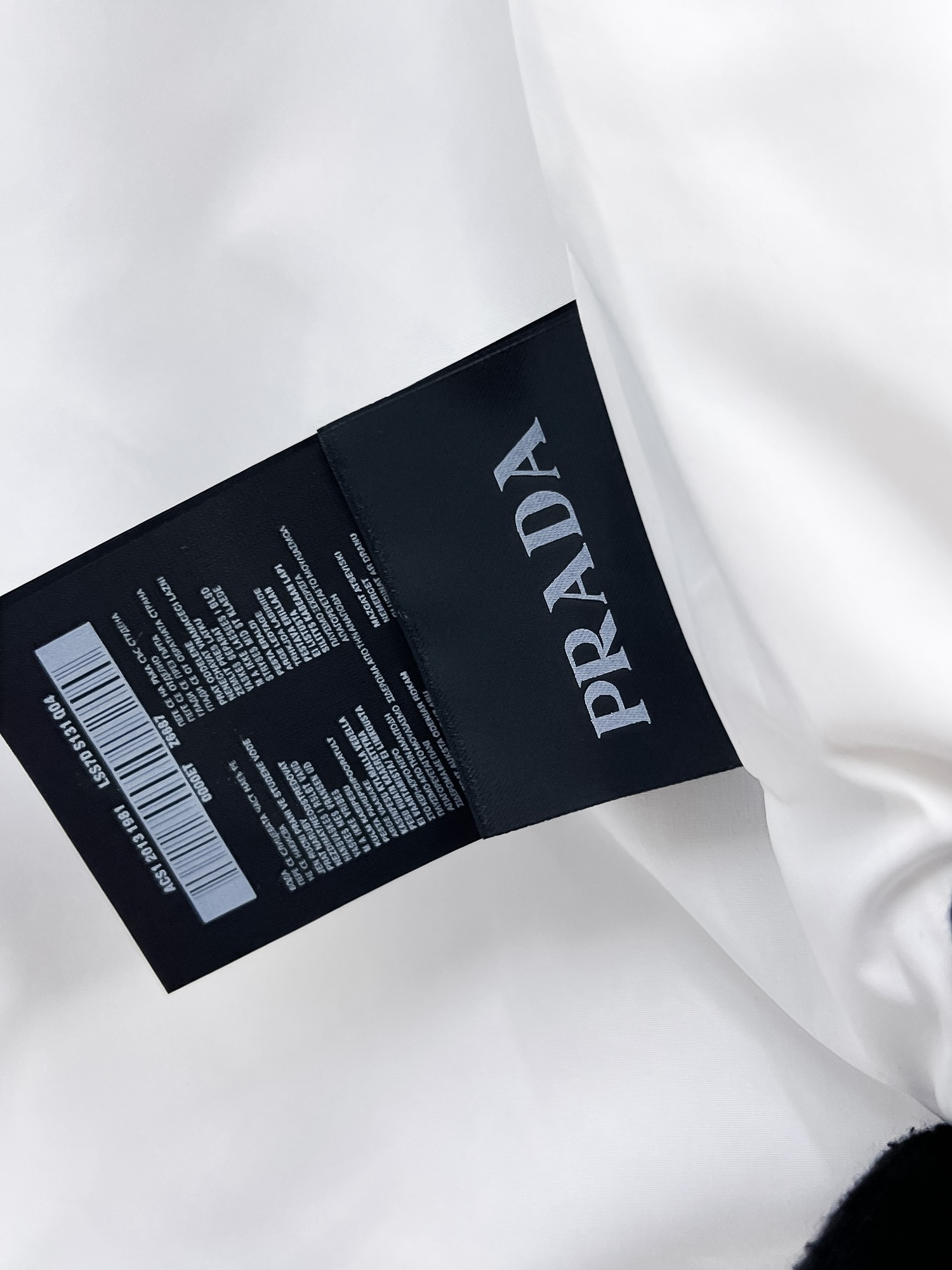这款衣服是AAAAA 1:1 质量 (非常棒). 使用了和原版一模一样的材料. 商标部分也保持了和普拉达/Prada一样. 图片拍摄是实物衣服拍摄, 您所收到的实物保证和我们图片一模一样.