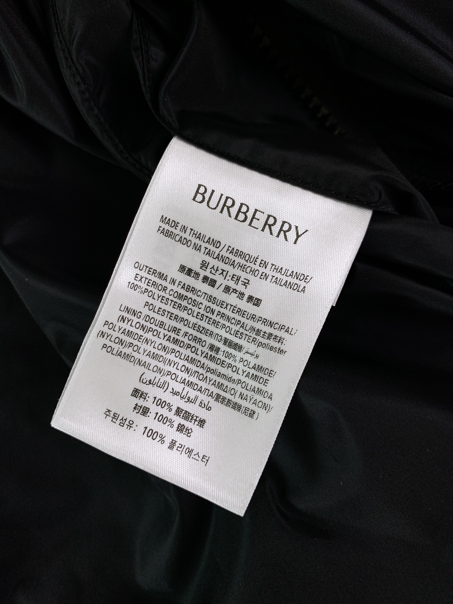 这款衣服是AAAAA 1:1 质量 (非常棒). 使用了和原版一模一样的材料. 商标部分也保持了和巴宝莉/Burberry一样. 图片拍摄是实物衣服拍摄, 您所收到的实物保证和我们图片一模一样.