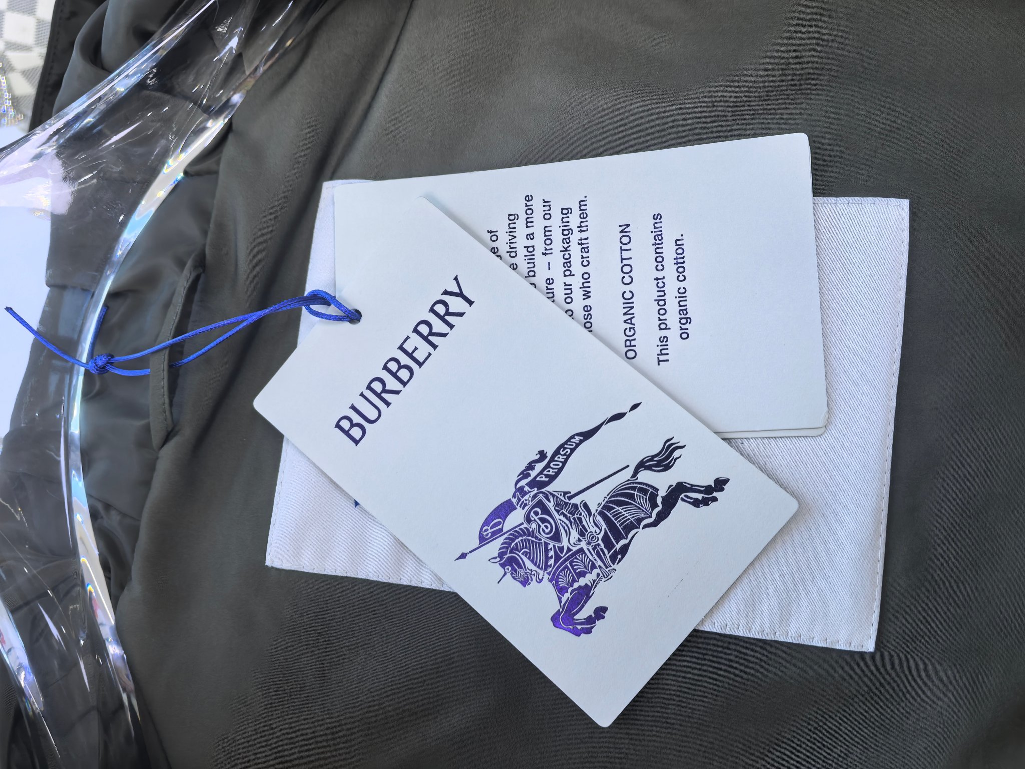 这款衣服是AAAAA 1:1 质量 (非常棒). 使用了和原版一模一样的材料. 商标部分也保持了和巴宝莉/Burberry一样. 图片拍摄是实物衣服拍摄, 您所收到的实物保证和我们图片一模一样.