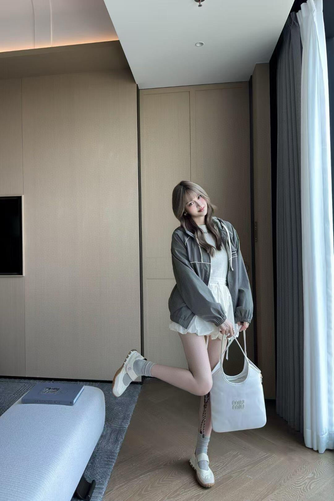 这款衣服是AAAAA 1:1 质量 (非常棒). 使用了和原版一模一样的材料. 商标部分也保持了和缪缪/Miu Miu一样. 图片拍摄是实物衣服拍摄, 您所收到的实物保证和我们图片一模一样.