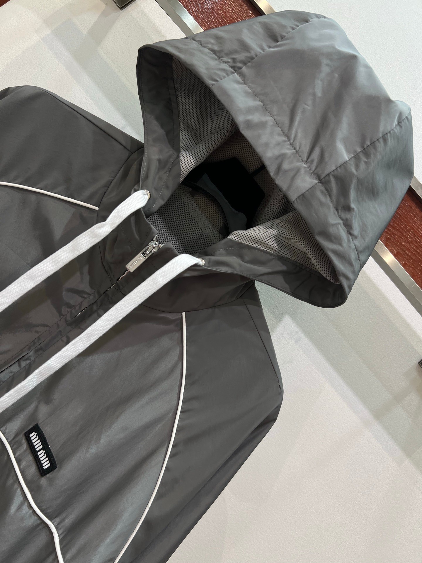 这款衣服是AAAAA 1:1 质量 (非常棒). 使用了和原版一模一样的材料. 商标部分也保持了和缪缪/Miu Miu一样. 图片拍摄是实物衣服拍摄, 您所收到的实物保证和我们图片一模一样.