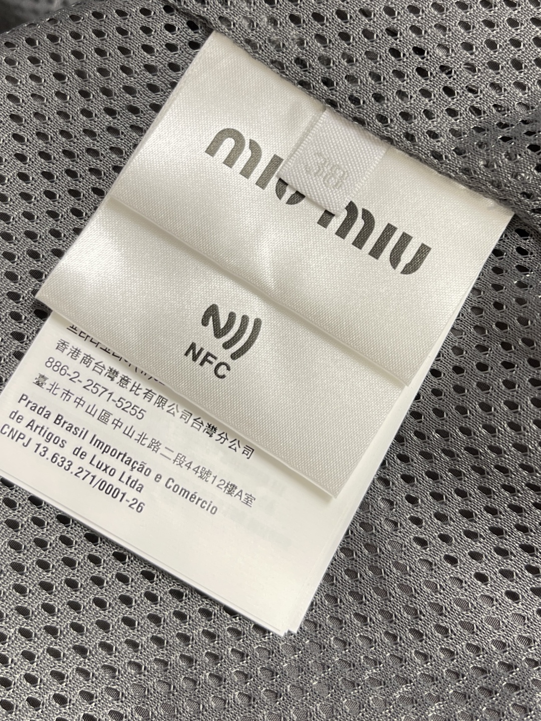 这款衣服是AAAAA 1:1 质量 (非常棒). 使用了和原版一模一样的材料. 商标部分也保持了和缪缪/Miu Miu一样. 图片拍摄是实物衣服拍摄, 您所收到的实物保证和我们图片一模一样.