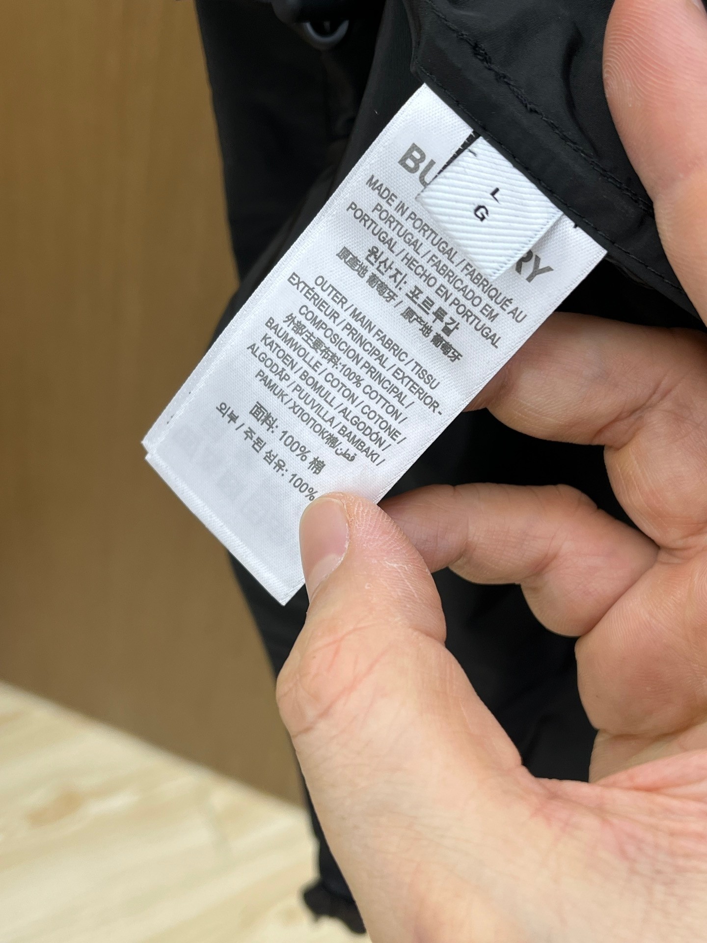 这款衣服是AAAAA 1:1 质量 (非常棒). 使用了和原版一模一样的材料. 商标部分也保持了和巴宝莉/Burberry一样. 图片拍摄是实物衣服拍摄, 您所收到的实物保证和我们图片一模一样.