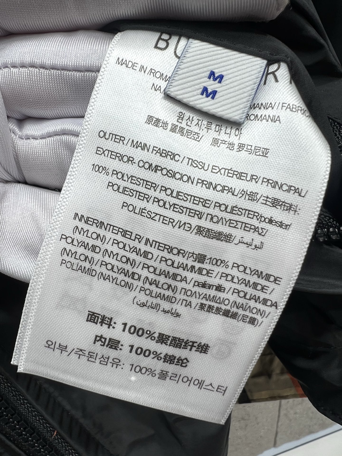 这款衣服是AAAAA 1:1 质量 (非常棒). 使用了和原版一模一样的材料. 商标部分也保持了和巴宝莉/Burberry一样. 图片拍摄是实物衣服拍摄, 您所收到的实物保证和我们图片一模一样.