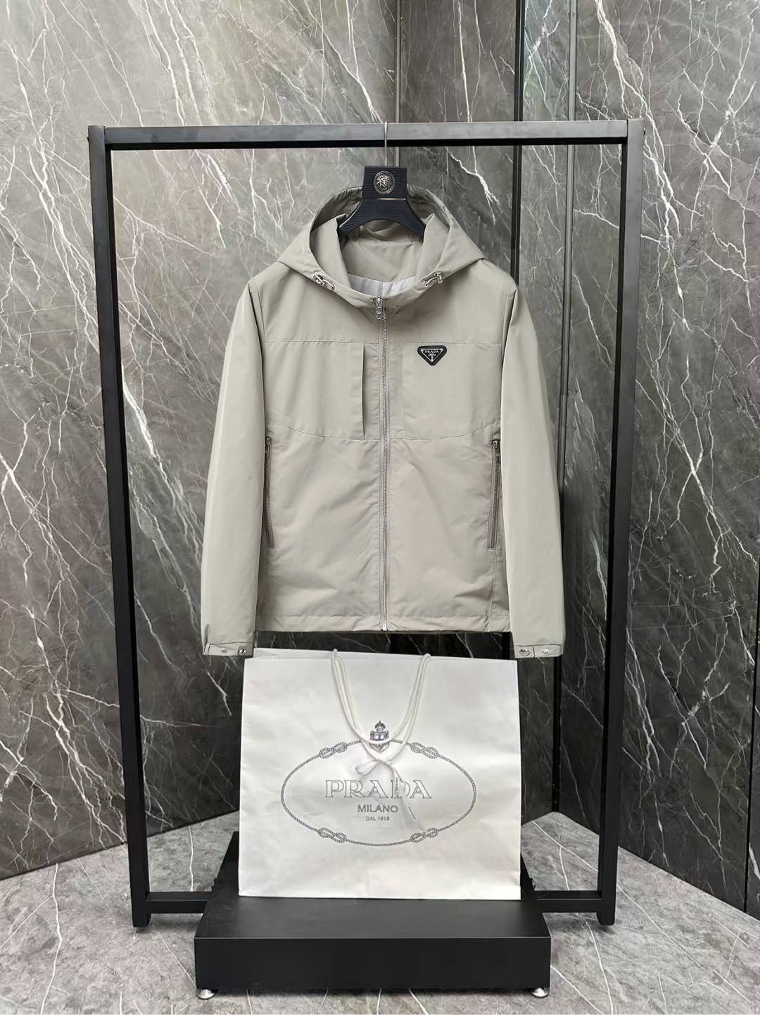 这款衣服是AAAAA 1:1 质量 (非常棒). 使用了和原版一模一样的材料. 商标部分也保持了和普拉达/Prada一样. 图片拍摄是实物衣服拍摄, 您所收到的实物保证和我们图片一模一样.