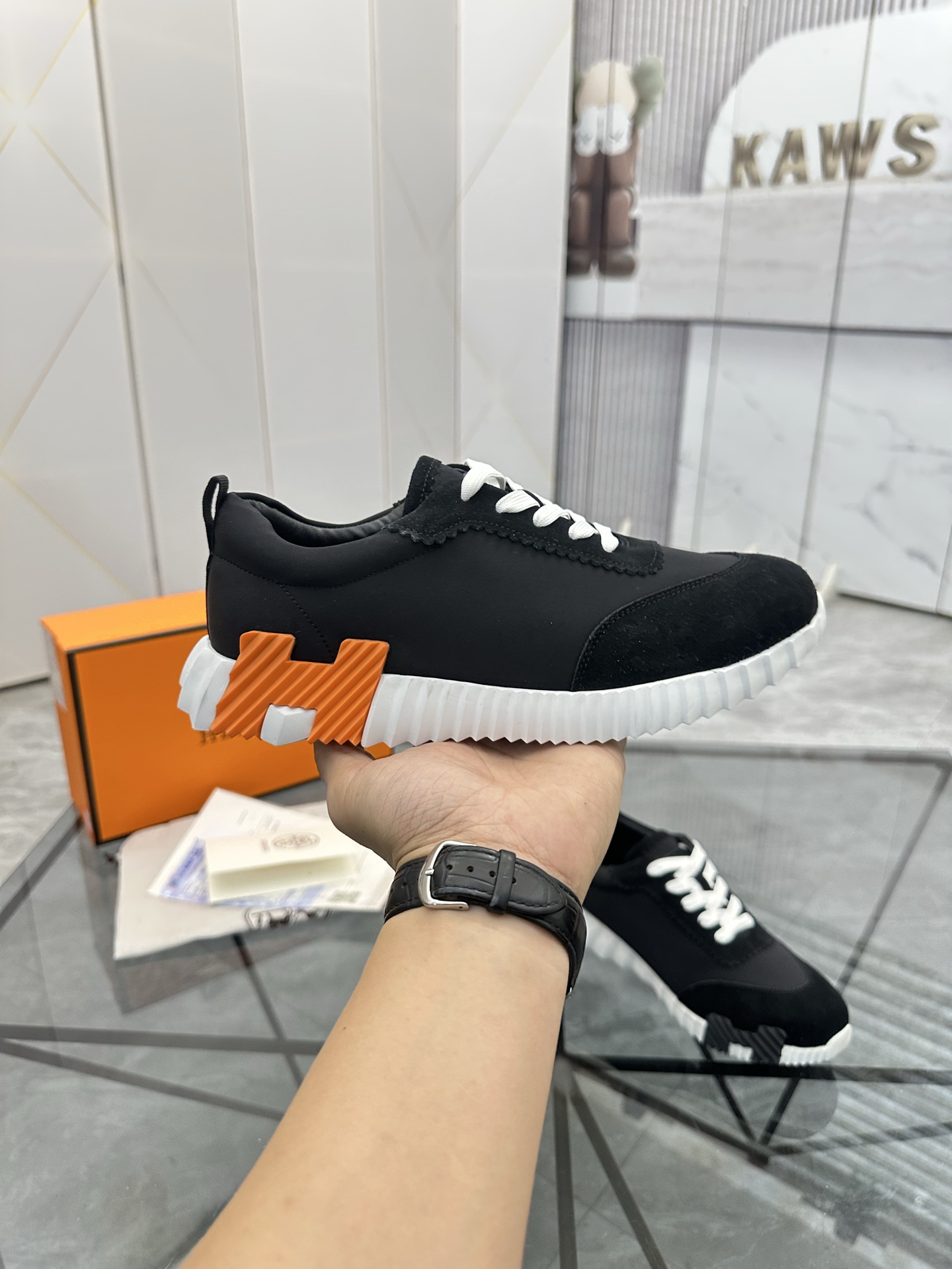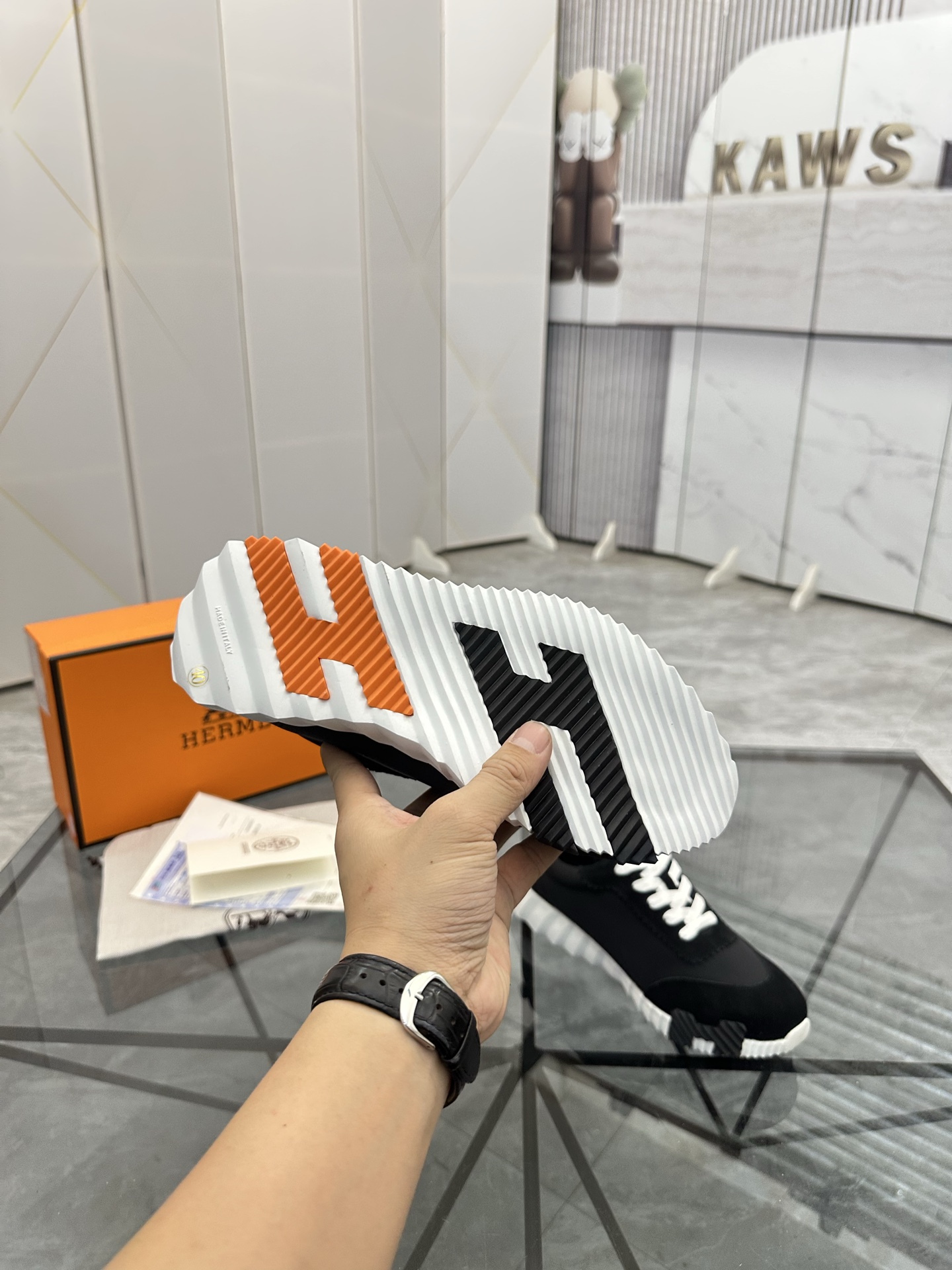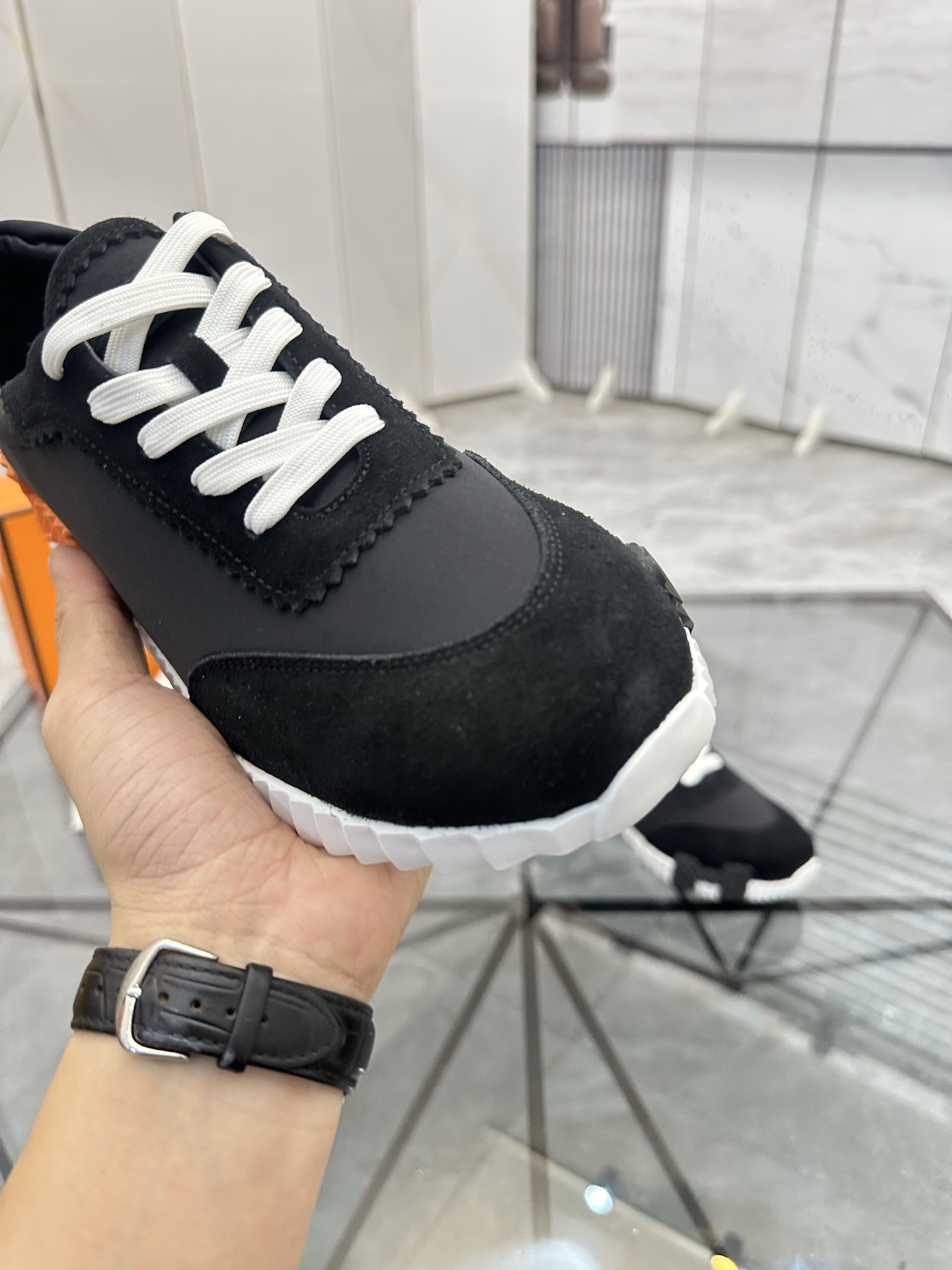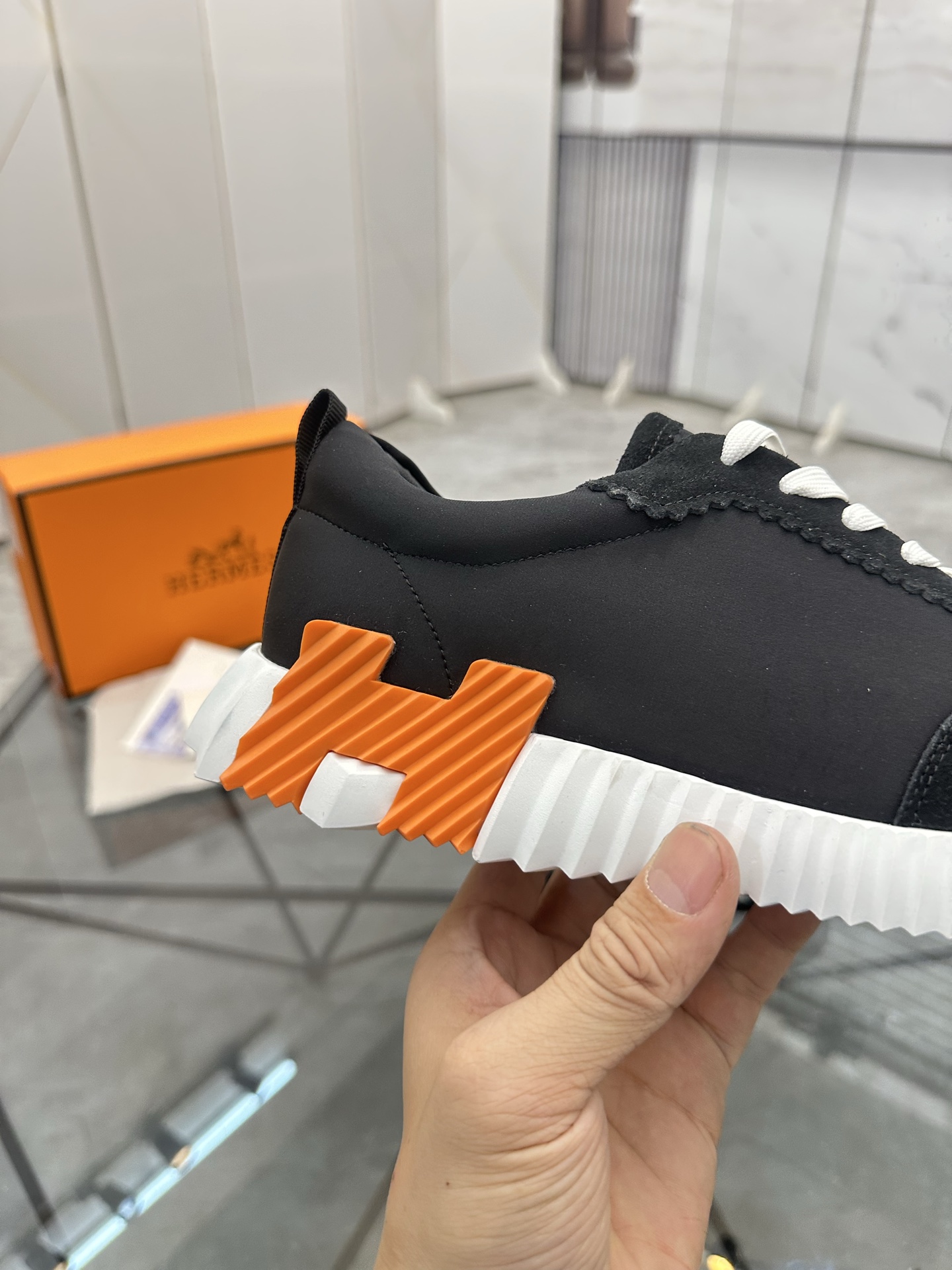 这款鞋子是AAAAA 1:1 质量 (非常棒). 使用了和原版一模一样的材料. 商标部分也保持了和爱马仕/Hermes一样. 图片拍摄是实物鞋子拍摄, 您所收到的实物保证和我们图片一模一样.