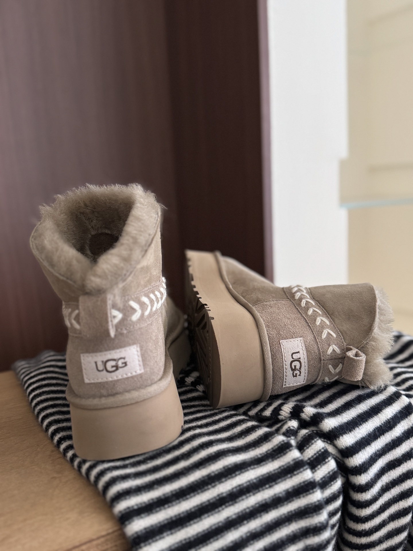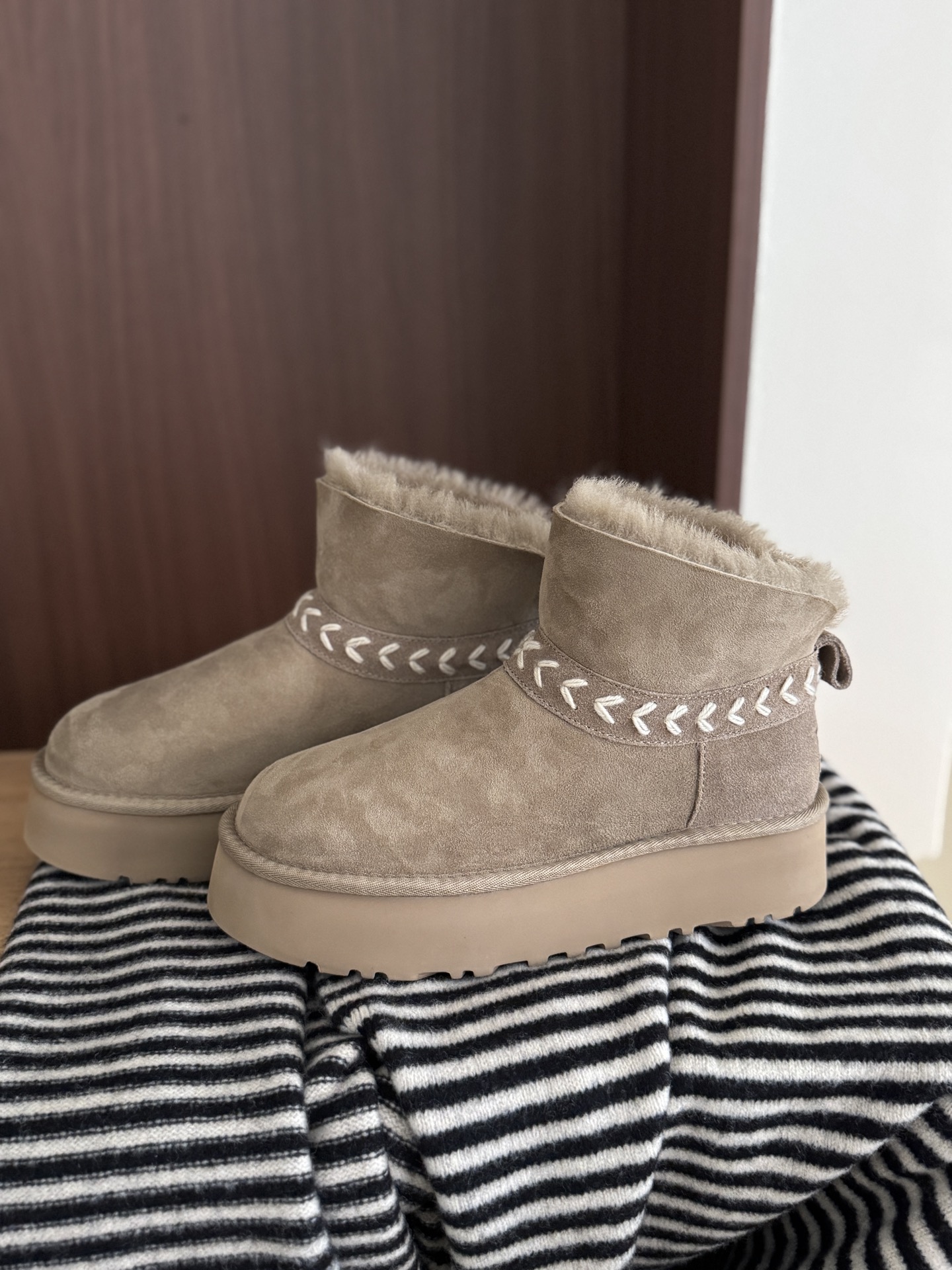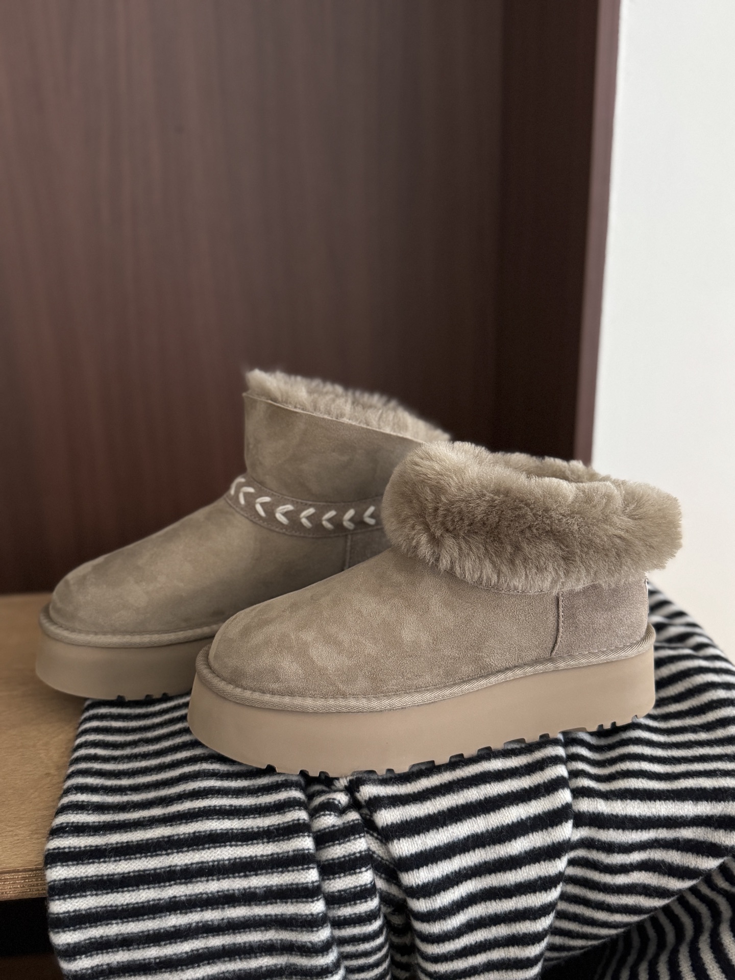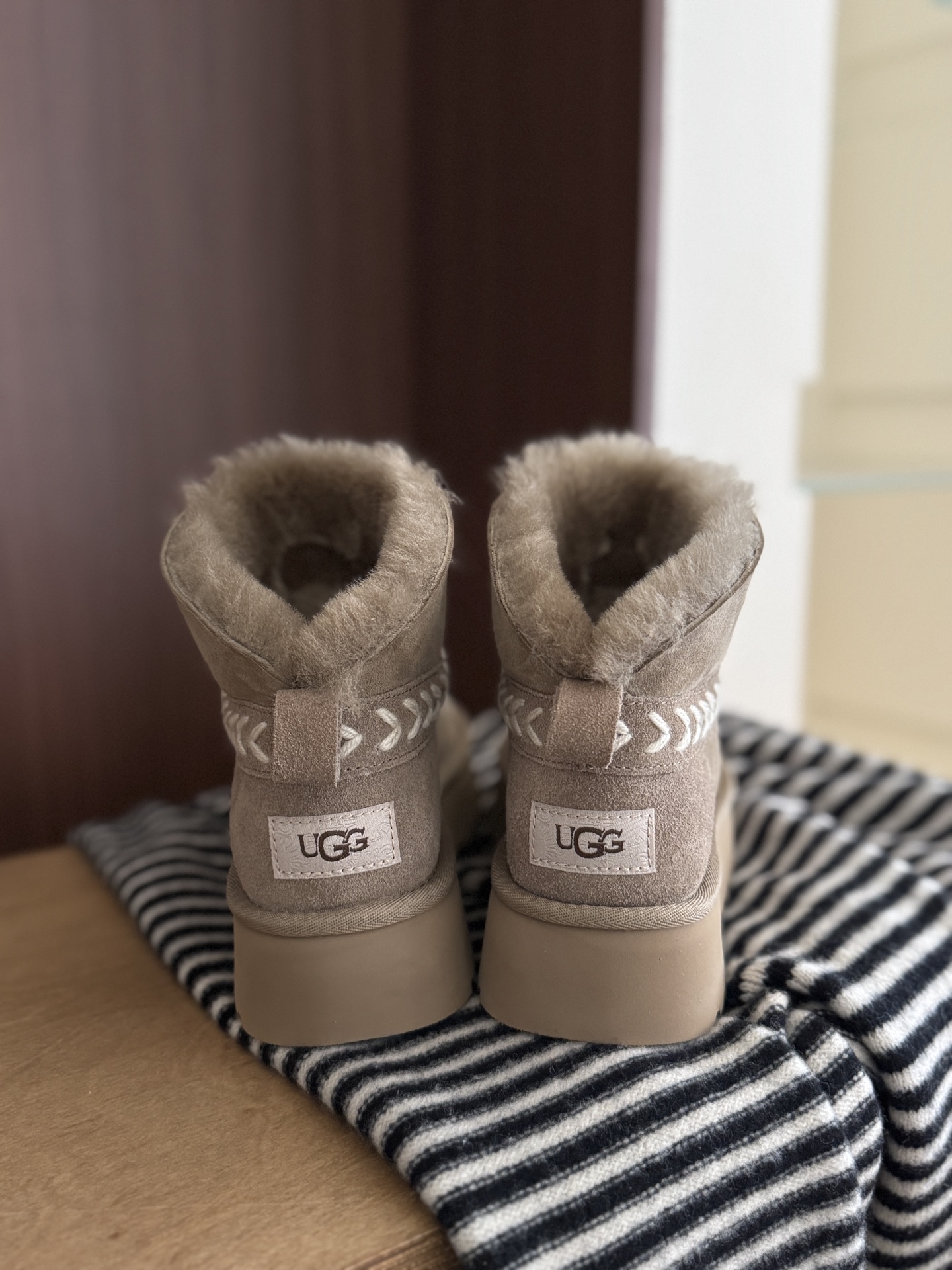 这款鞋子是AAAAA 1:1 质量 (非常棒). 使用了和原版一模一样的材料. 商标部分也保持了和UGG雪地靴一样. 图片拍摄是实物鞋子拍摄, 您所收到的实物保证和我们图片一模一样.