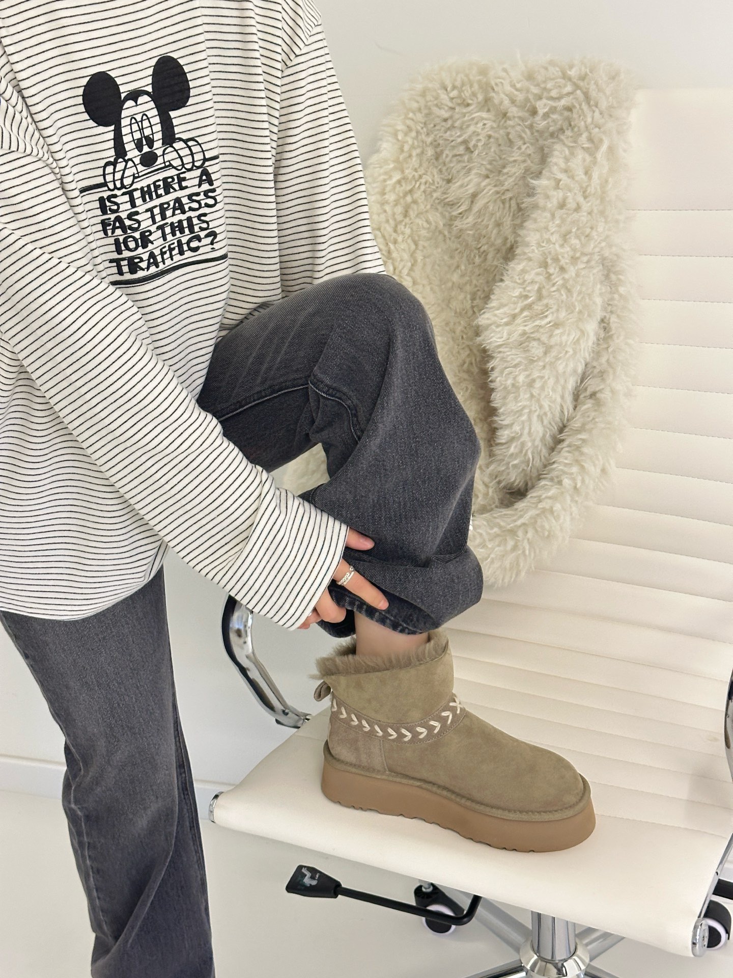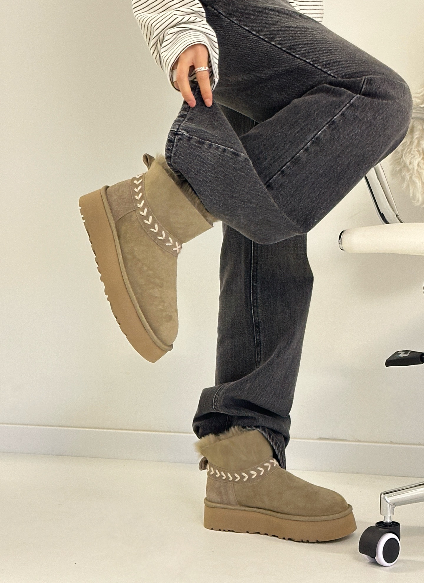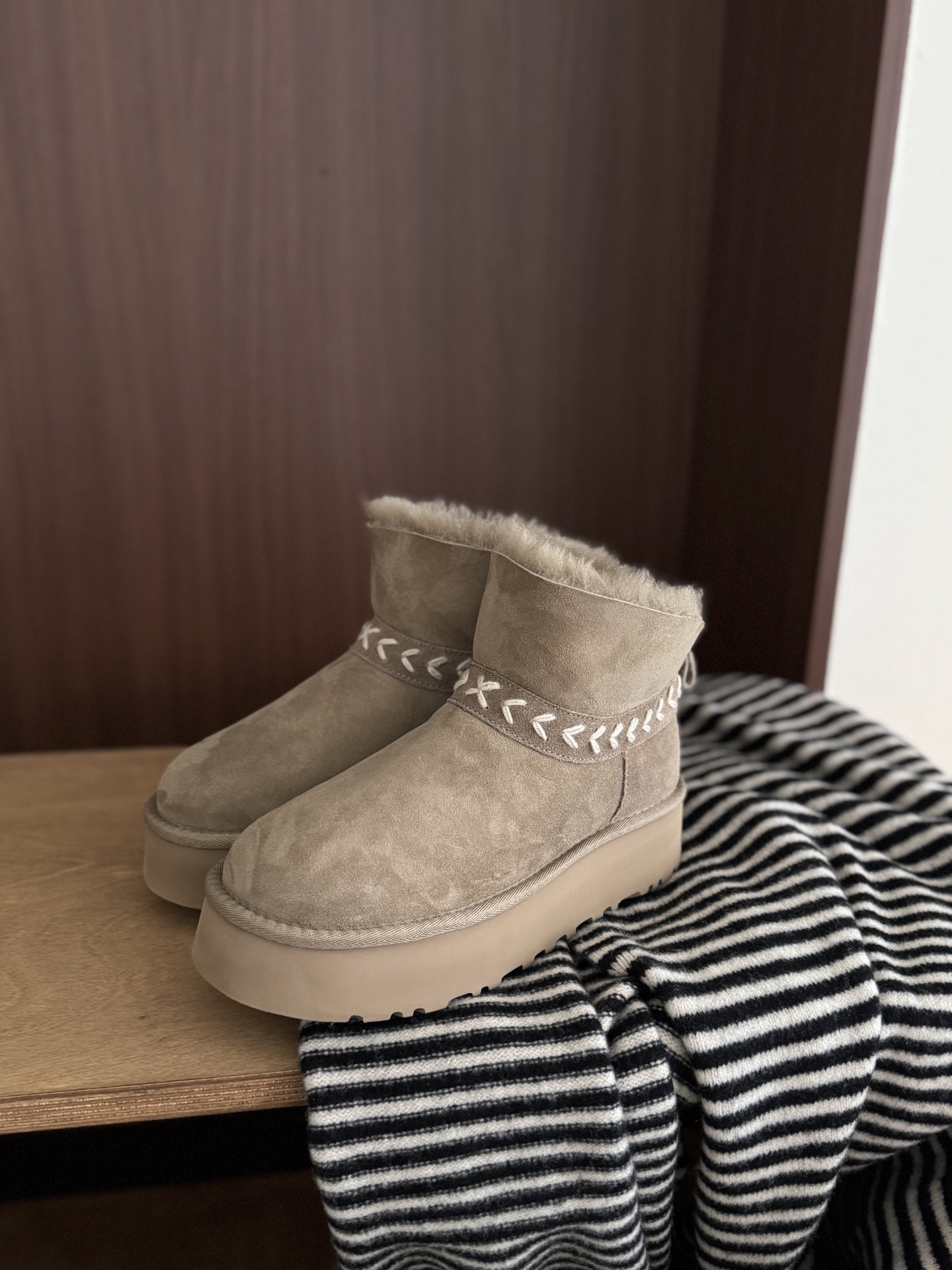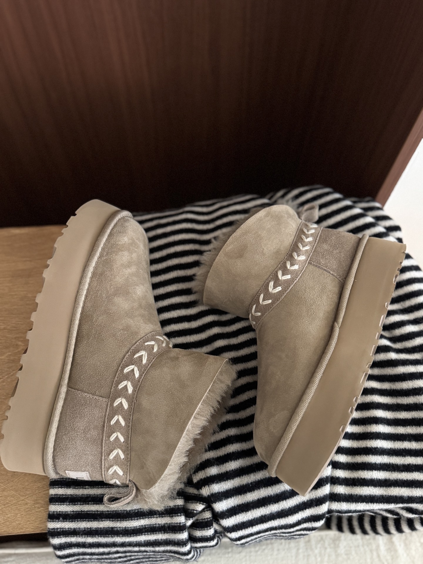 这款鞋子是AAAAA 1:1 质量 (非常棒). 使用了和原版一模一样的材料. 商标部分也保持了和UGG雪地靴一样. 图片拍摄是实物鞋子拍摄, 您所收到的实物保证和我们图片一模一样.