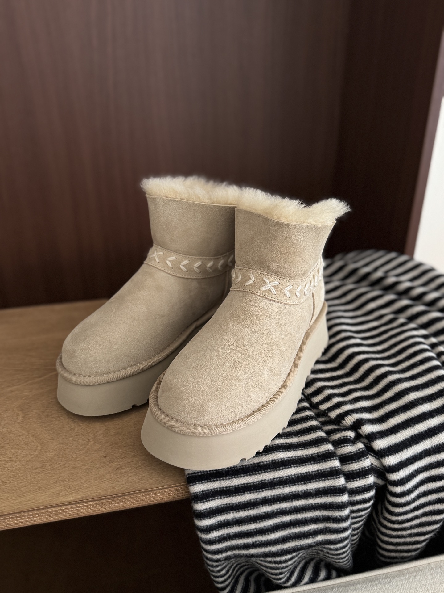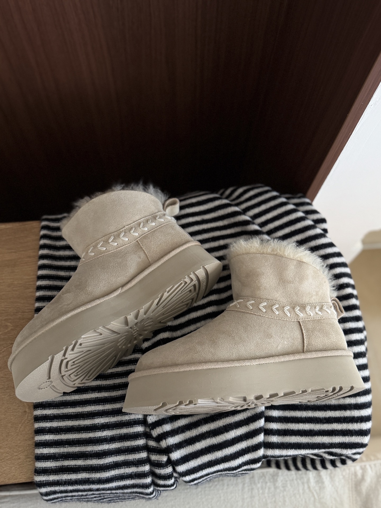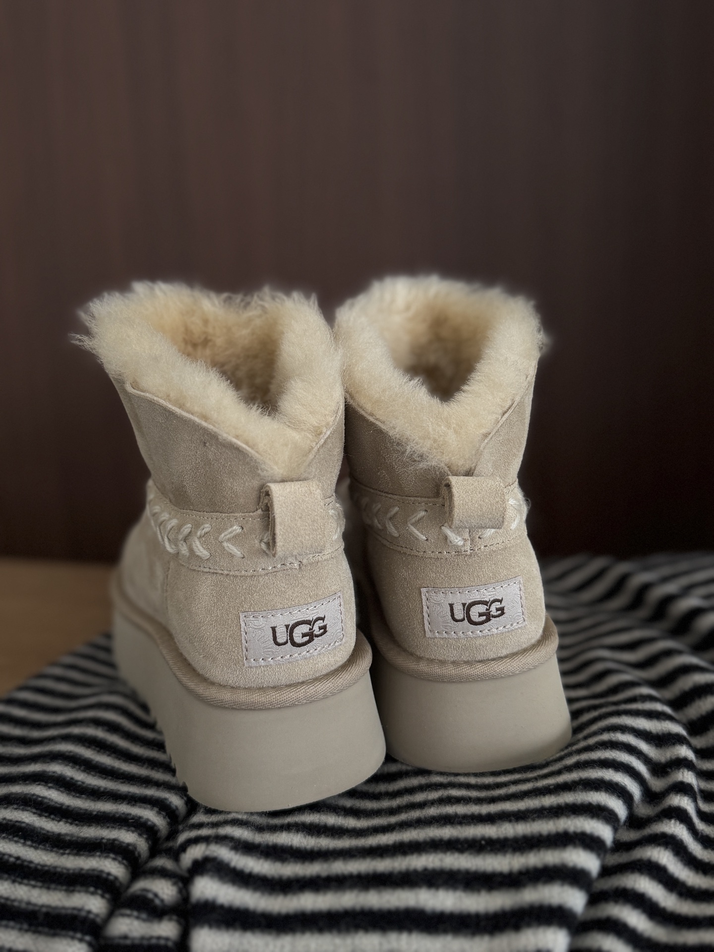 这款鞋子是AAAAA 1:1 质量 (非常棒). 使用了和原版一模一样的材料. 商标部分也保持了和UGG雪地靴一样. 图片拍摄是实物鞋子拍摄, 您所收到的实物保证和我们图片一模一样.