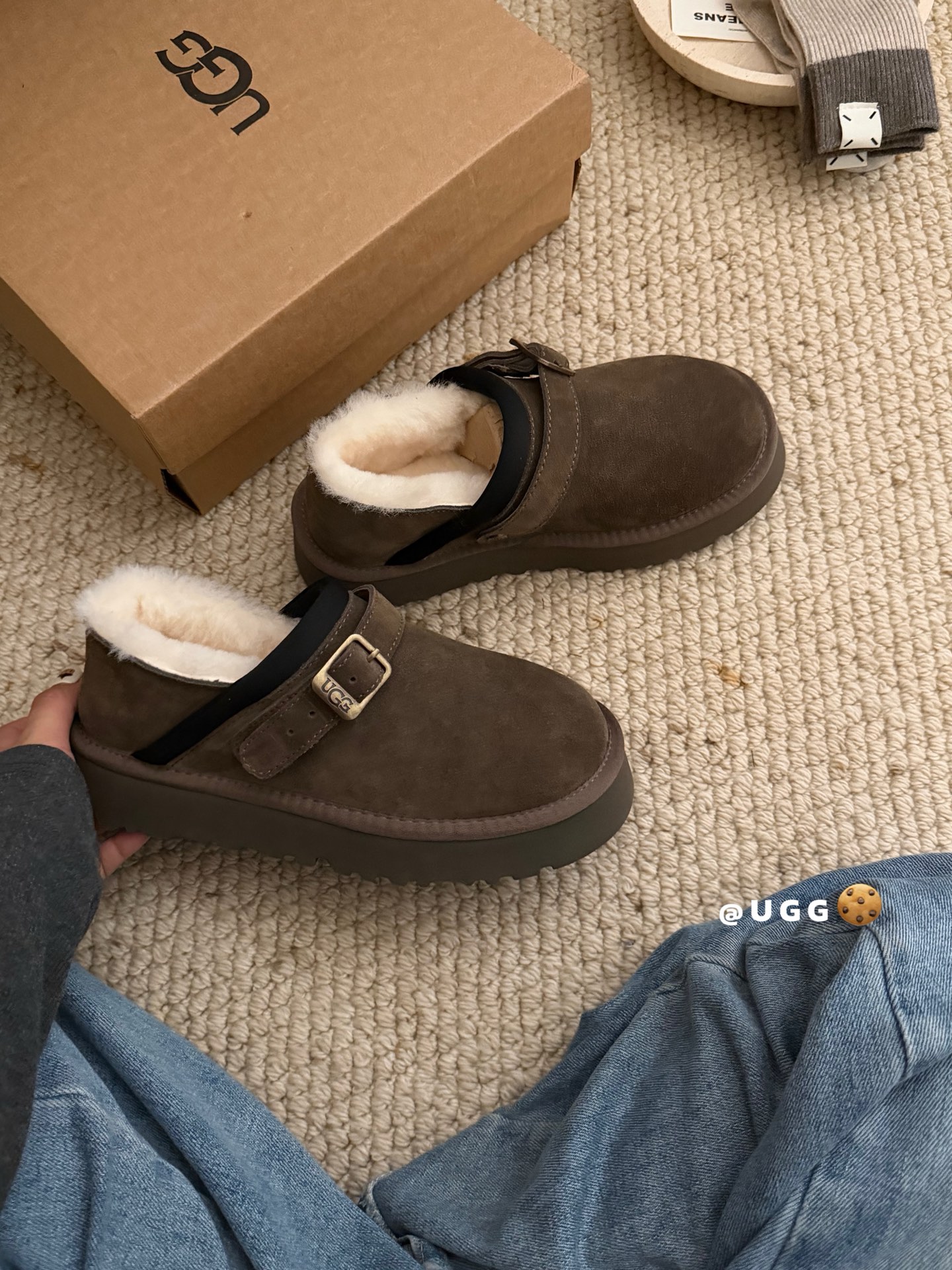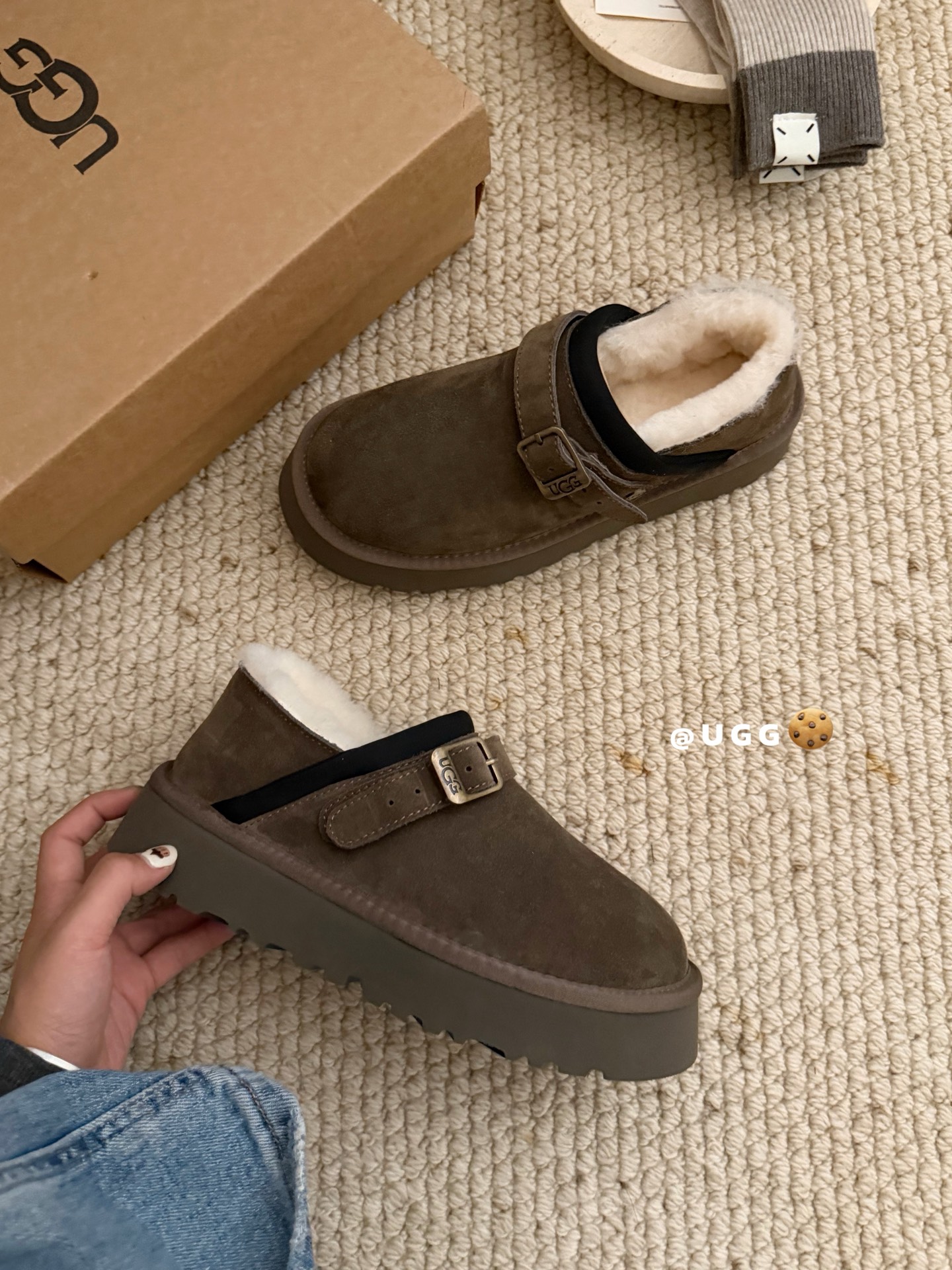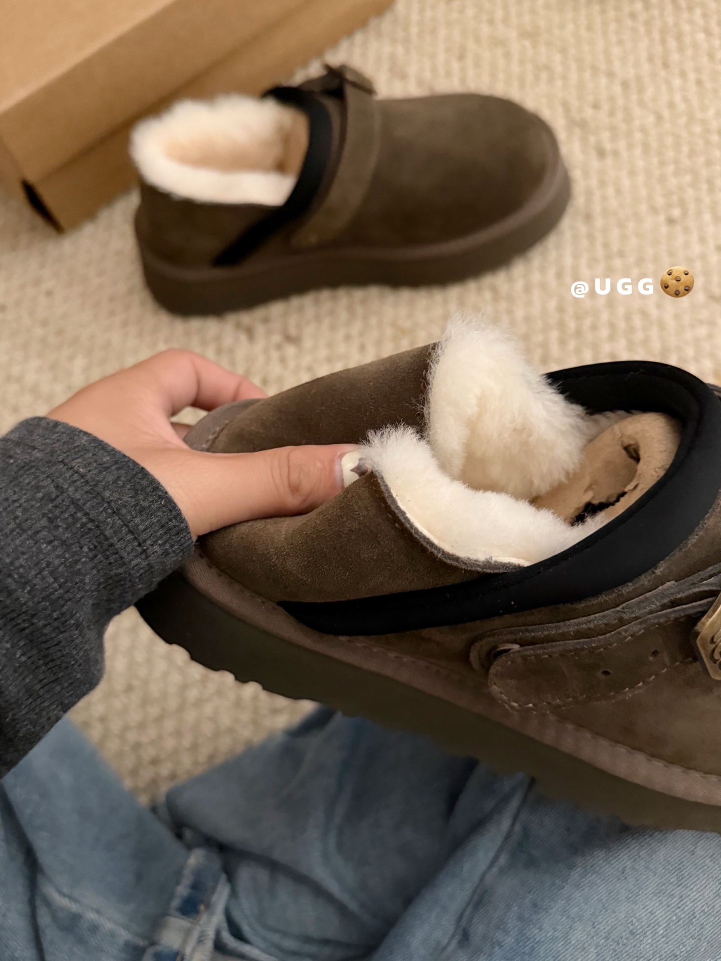 这款鞋子是AAAAA 1:1 质量 (非常棒). 使用了和原版一模一样的材料. 商标部分也保持了和UGG雪地靴一样. 图片拍摄是实物鞋子拍摄, 您所收到的实物保证和我们图片一模一样.