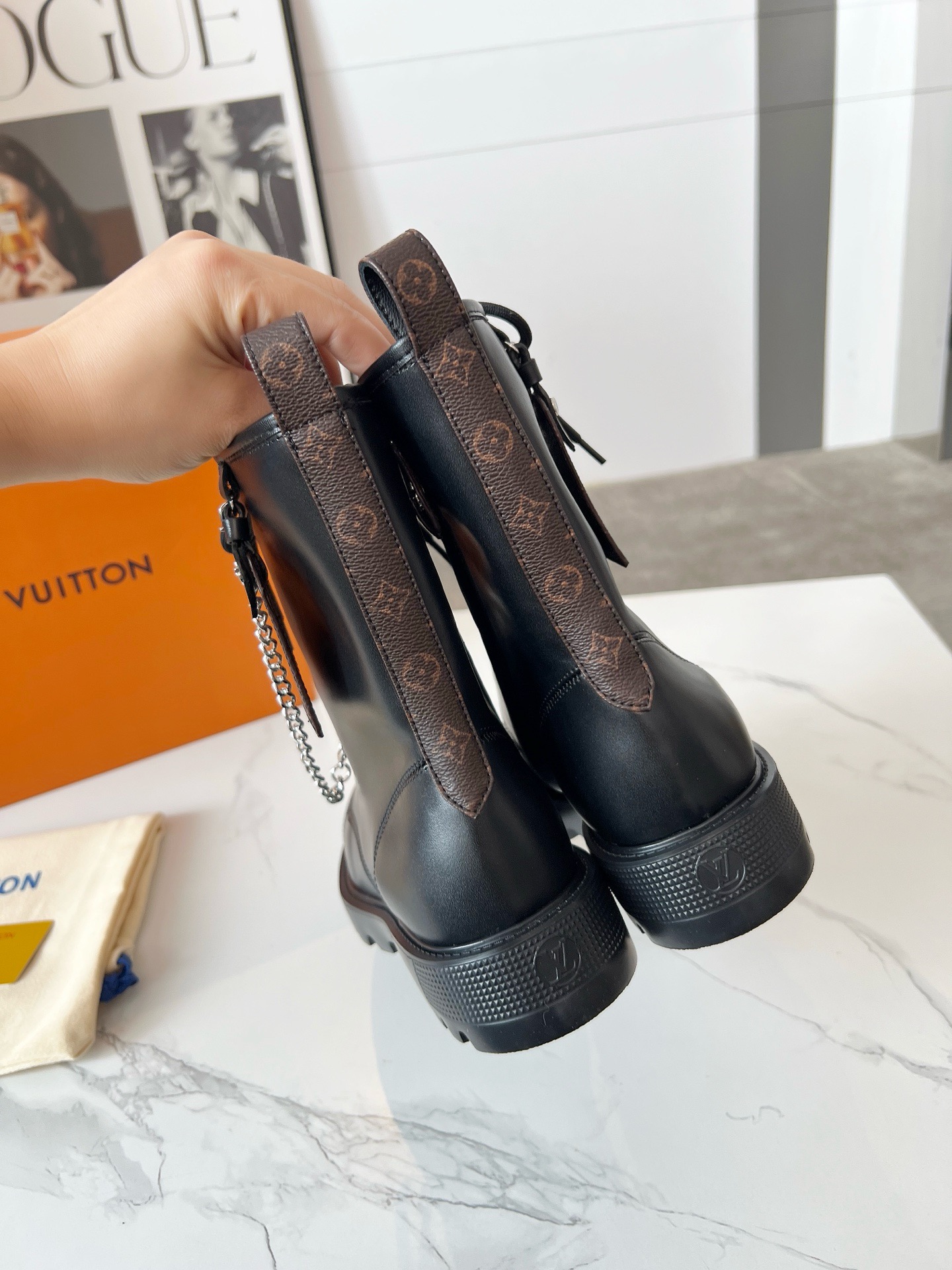 这款鞋子是AAAAA 1:1 质量 (非常棒). 使用了和原版一模一样的材料. 商标部分也保持了和路易威登/Louis Vuitton一样. 图片拍摄是实物鞋子拍摄, 您所收到的实物保证和我们图片一模一样.