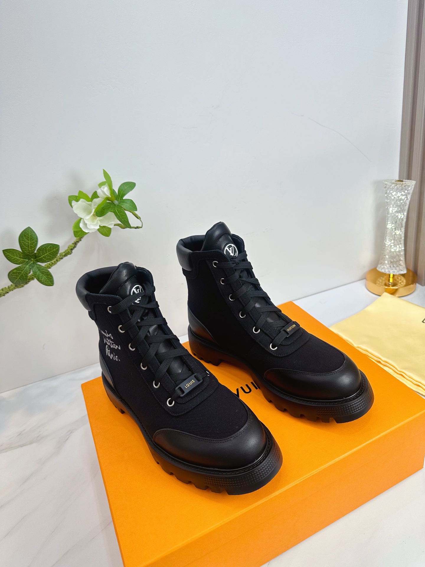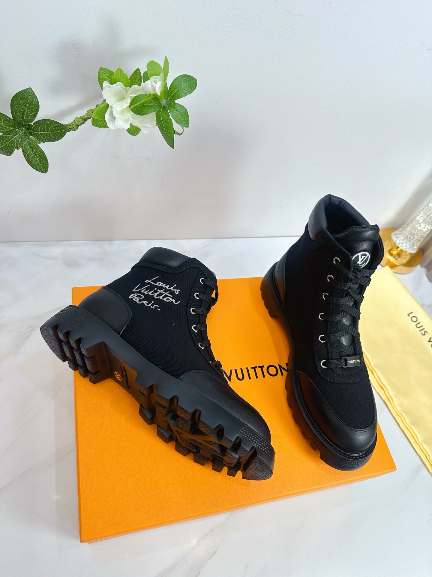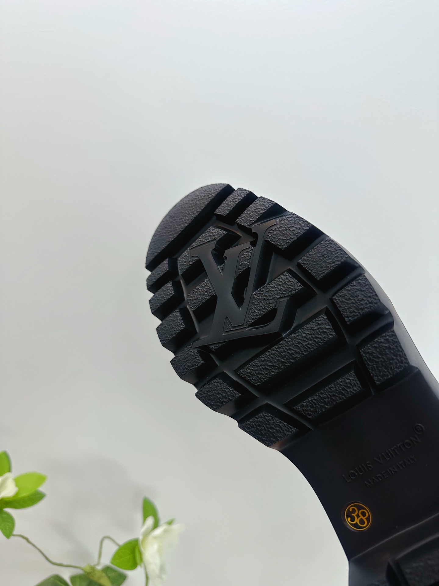 这款鞋子是AAAAA 1:1 质量 (非常棒). 使用了和原版一模一样的材料. 商标部分也保持了和路易威登/Louis Vuitton一样. 图片拍摄是实物鞋子拍摄, 您所收到的实物保证和我们图片一模一样.