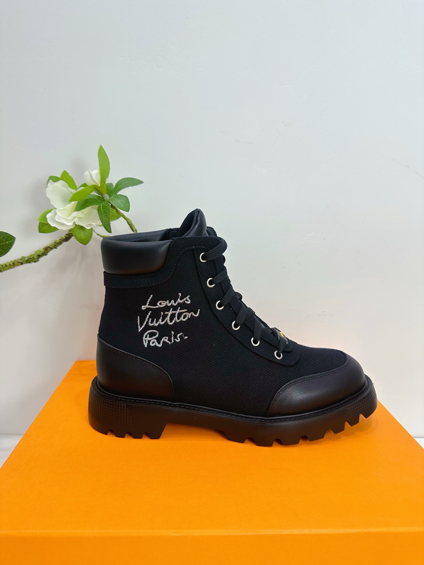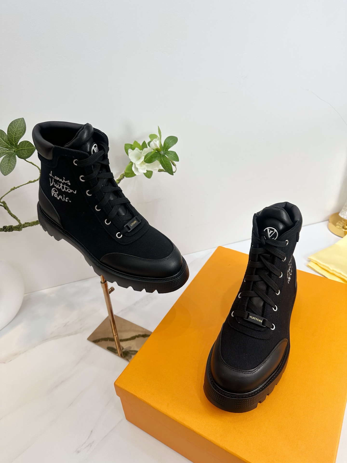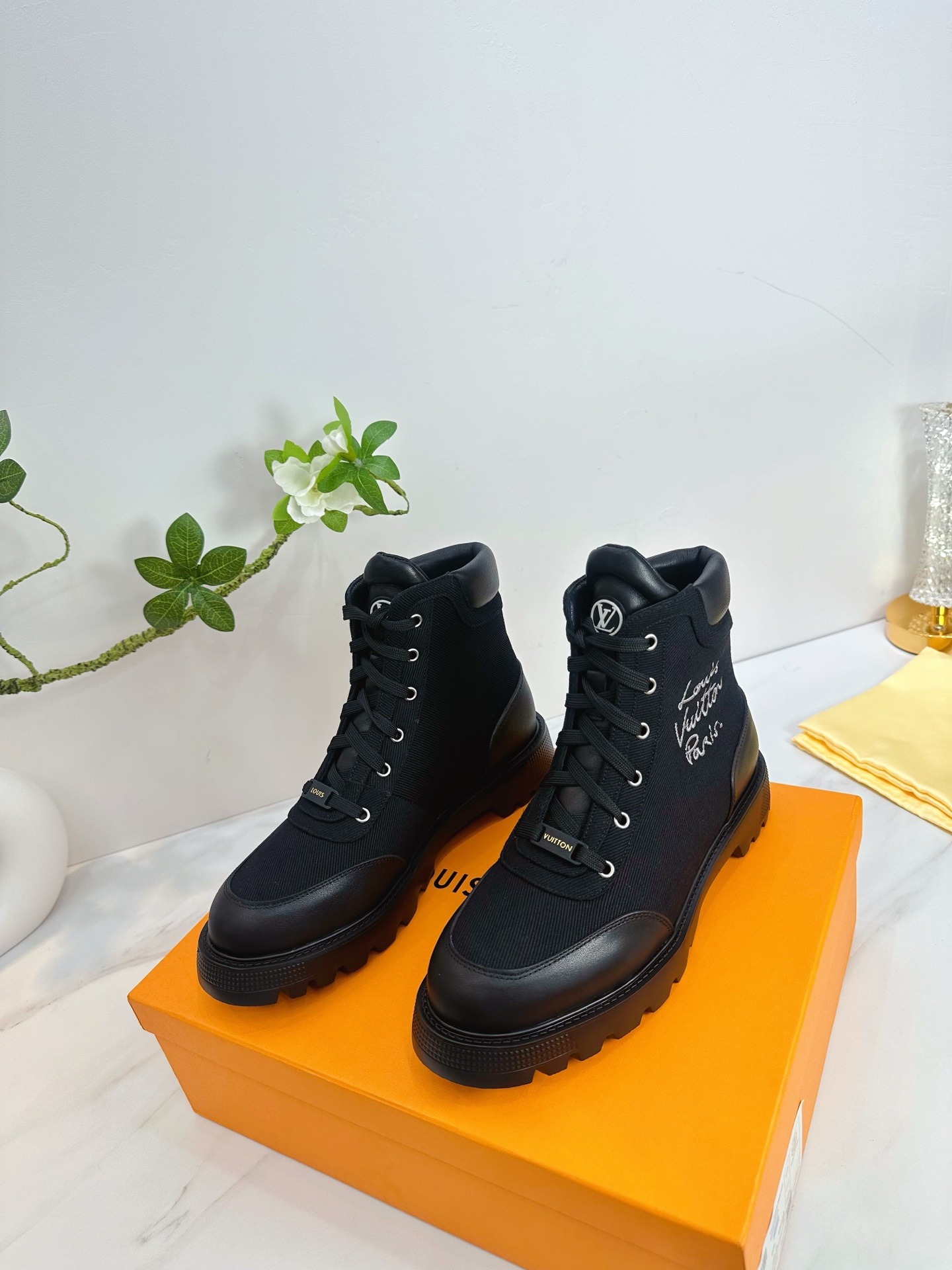 这款鞋子是AAAAA 1:1 质量 (非常棒). 使用了和原版一模一样的材料. 商标部分也保持了和路易威登/Louis Vuitton一样. 图片拍摄是实物鞋子拍摄, 您所收到的实物保证和我们图片一模一样.