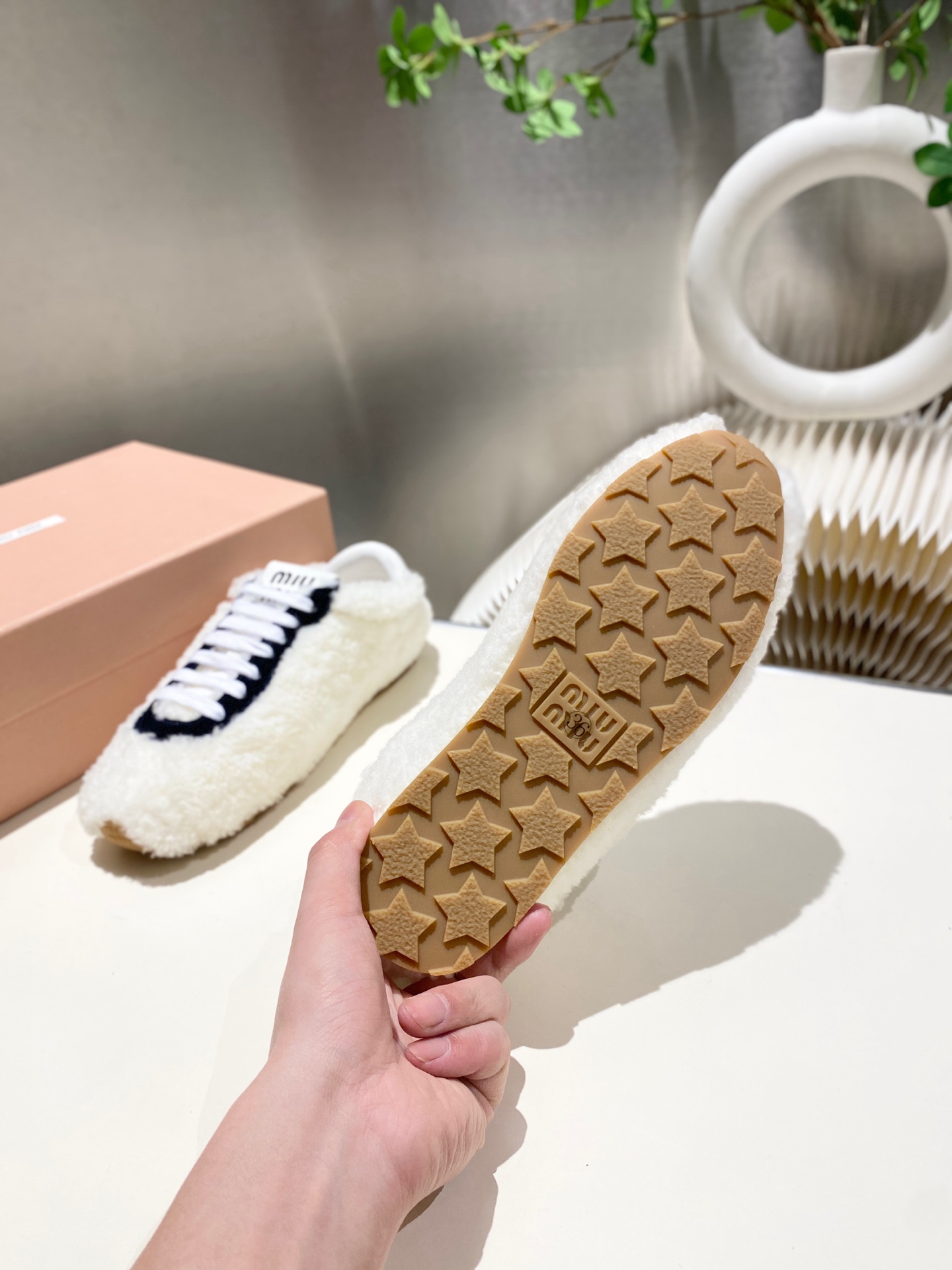 这款鞋子是AAAAA 1:1 质量 (非常棒). 使用了和原版一模一样的材料. 商标部分也保持了和缪缪/Miu Miu一样. 图片拍摄是实物鞋子拍摄, 您所收到的实物保证和我们图片一模一样.