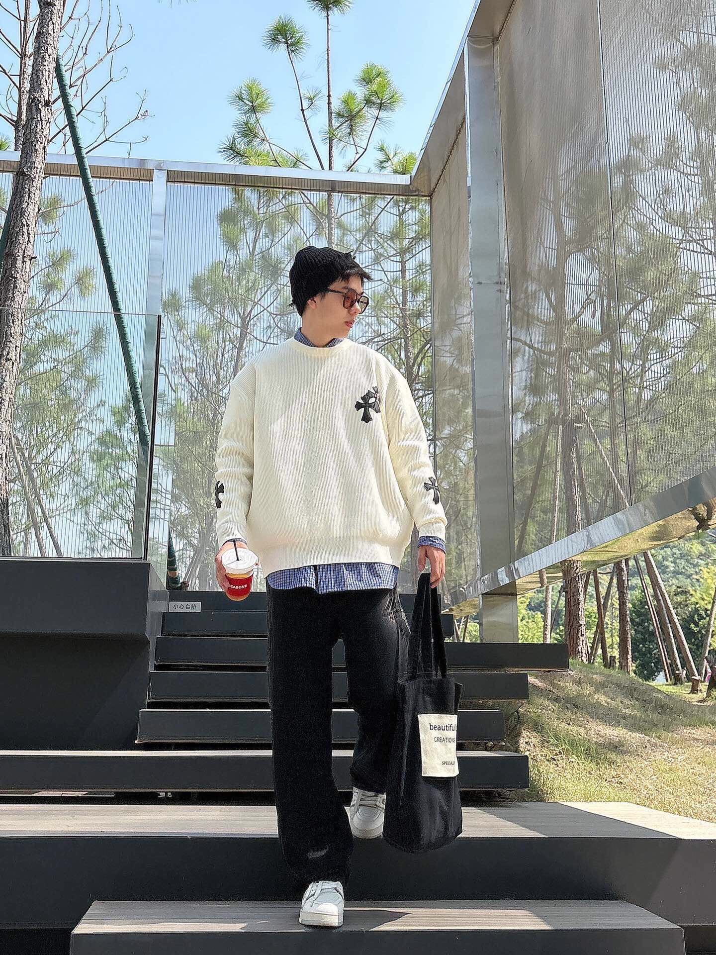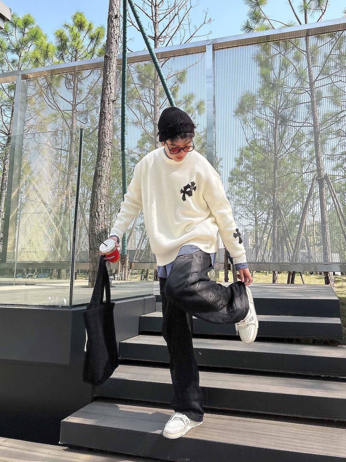 这款衣服是AAAAA 1:1 质量 (非常棒). 使用了和原版一模一样的材料. 商标部分也保持了和克罗心/Chrome Hearts一样. 图片拍摄是实物衣服拍摄, 您所收到的实物保证和我们图片一模一样.