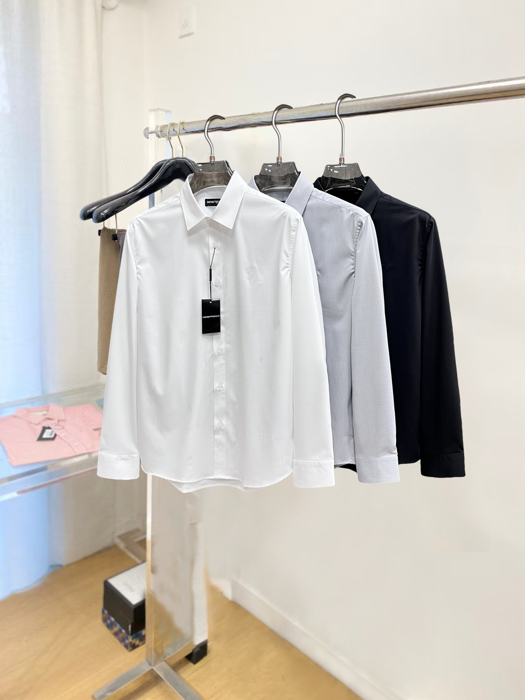 这款衣服是AAAAA 1:1 质量 (非常棒). 使用了和原版一模一样的材料. 商标部分也保持了和阿玛尼/Armani一样. 图片拍摄是实物衣服拍摄, 您所收到的实物保证和我们图片一模一样.