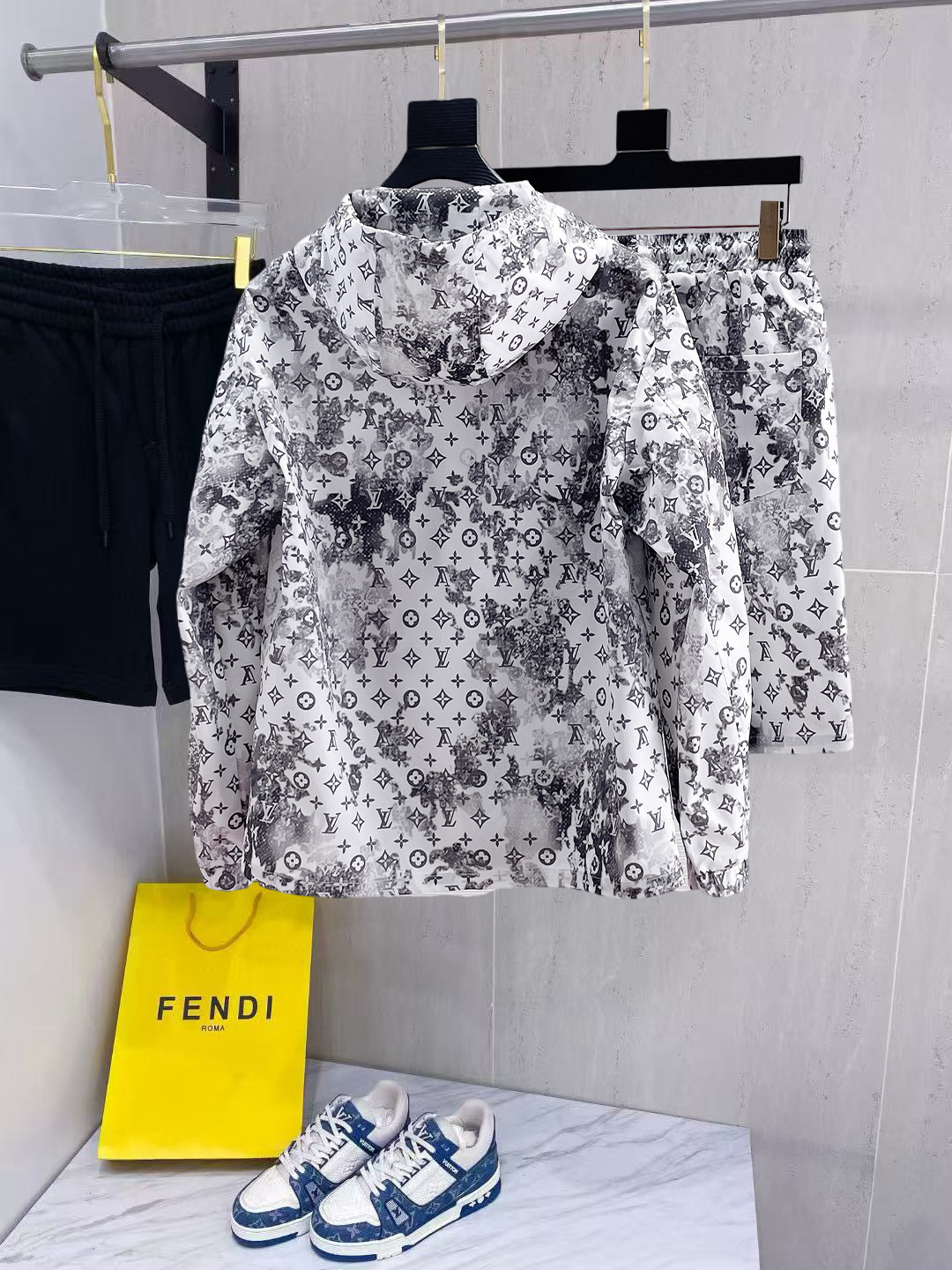 这款衣服是AAAAA 1:1 质量 (非常棒). 使用了和原版一模一样的材料. 商标部分也保持了和路易威登/Louis Vuitton一样. 图片拍摄是实物衣服拍摄, 您所收到的实物保证和我们图片一模一样.