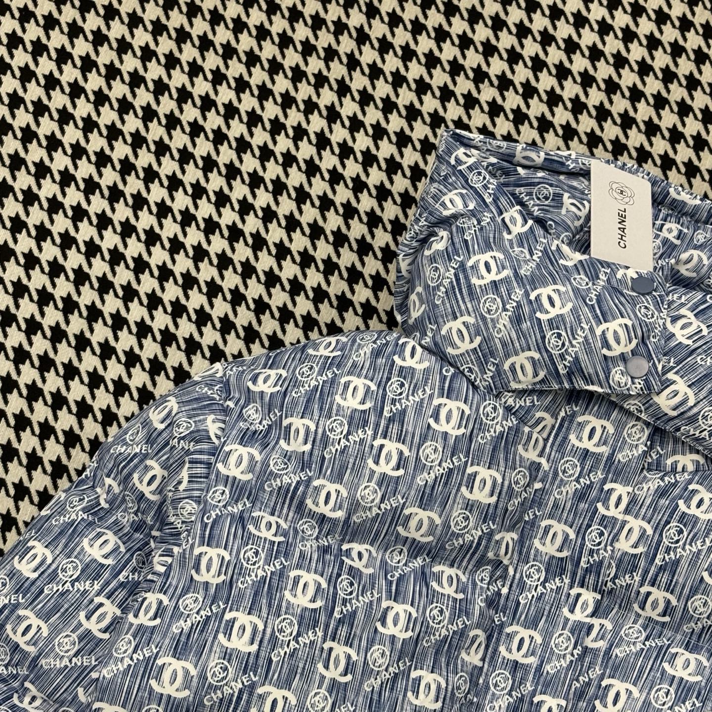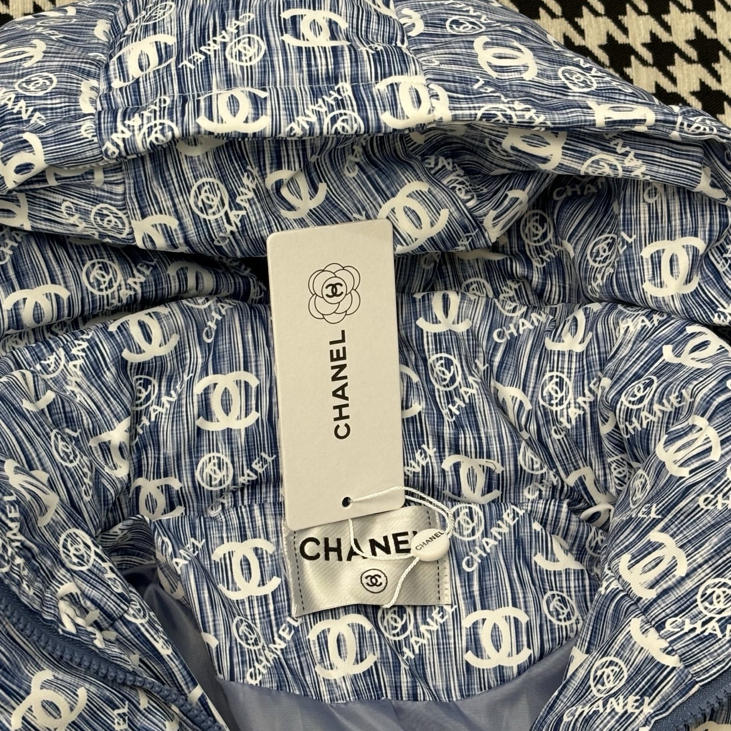这款衣服是AAAAA 1:1 质量 (非常棒). 使用了和原版一模一样的材料. 商标部分也保持了和香奈儿/Chanel一样. 图片拍摄是实物衣服拍摄, 您所收到的实物保证和我们图片一模一样.