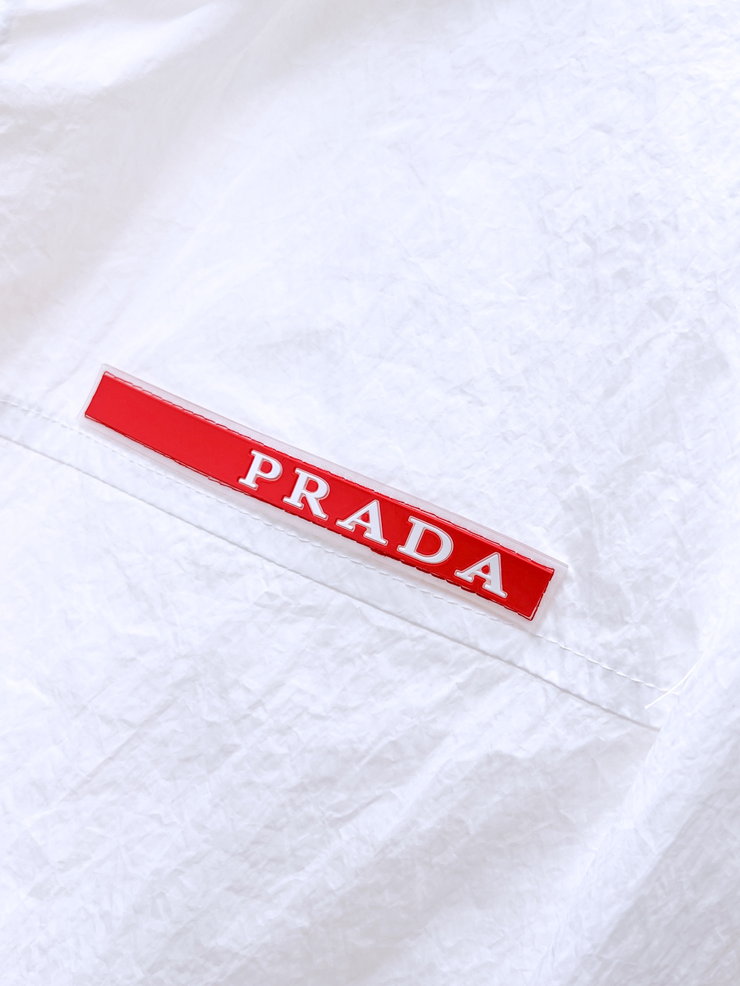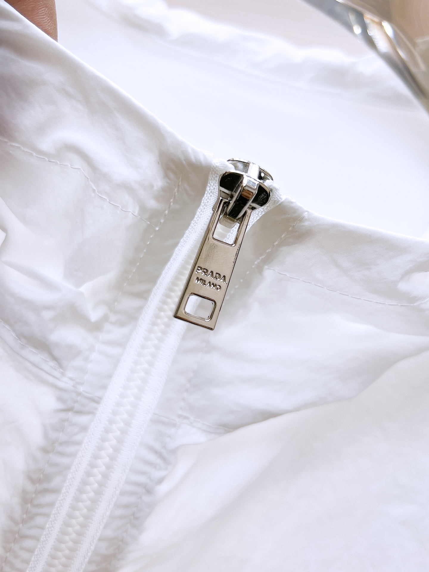 这款衣服是AAAAA 1:1 质量 (非常棒). 使用了和原版一模一样的材料. 商标部分也保持了和普拉达/Prada一样. 图片拍摄是实物衣服拍摄, 您所收到的实物保证和我们图片一模一样.