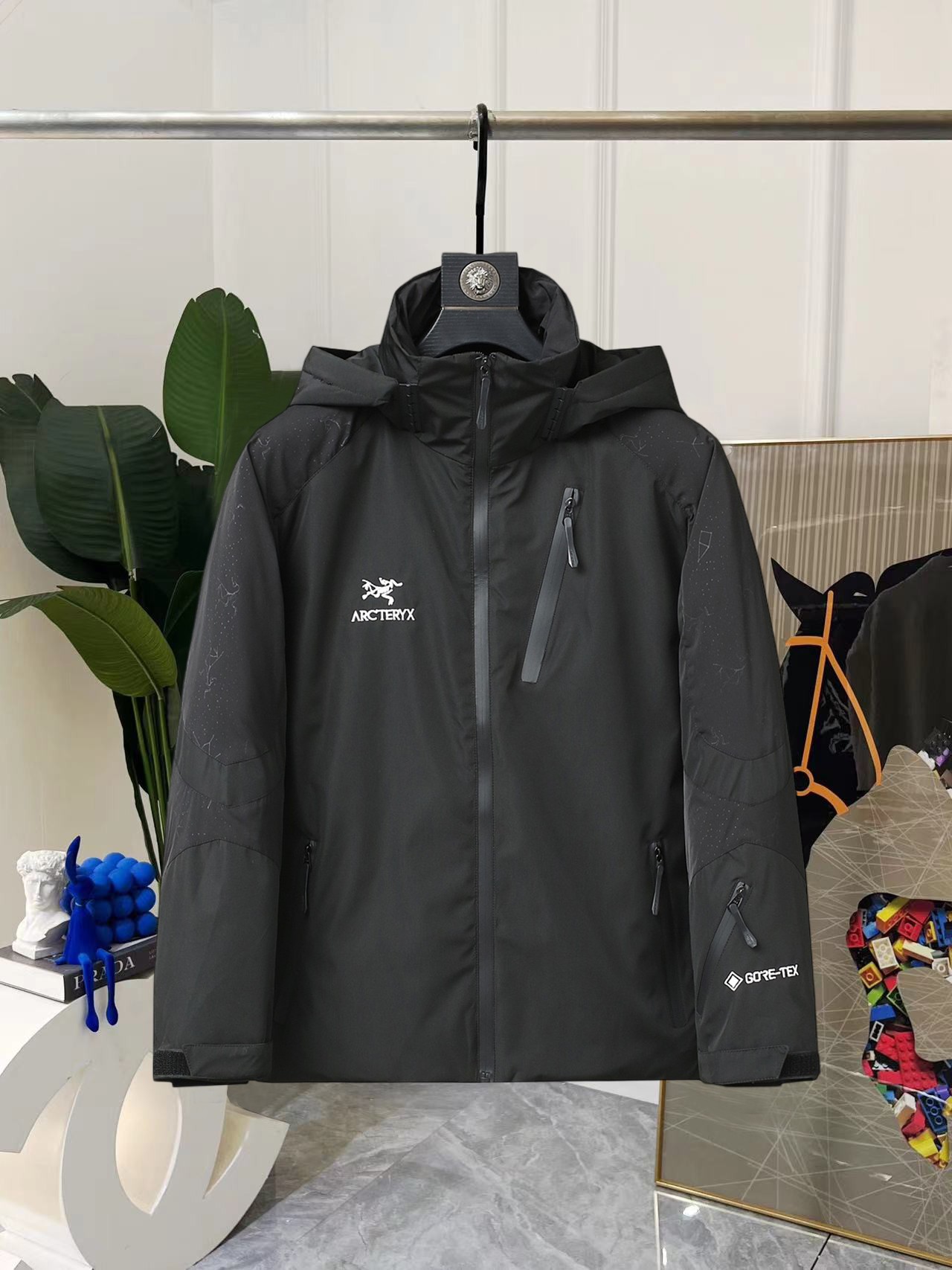 这款衣服是AAAAA 1:1 质量 (非常棒). 使用了和原版一模一样的材料. 商标部分也保持了和ARC'TERYX一样. 图片拍摄是实物衣服拍摄, 您所收到的实物保证和我们图片一模一样.