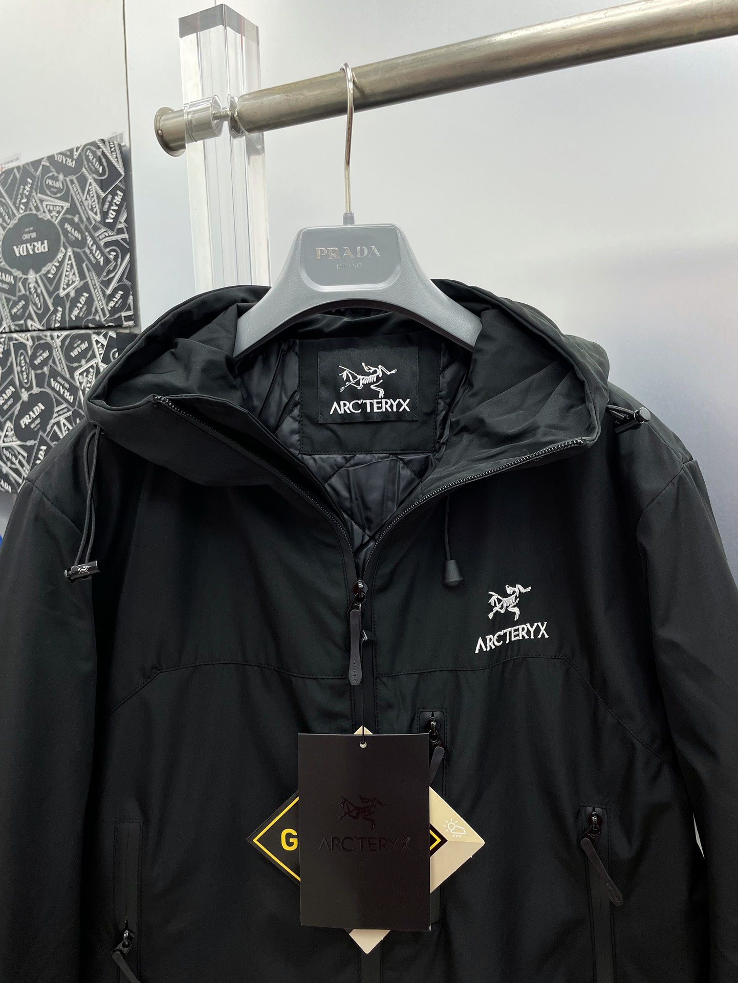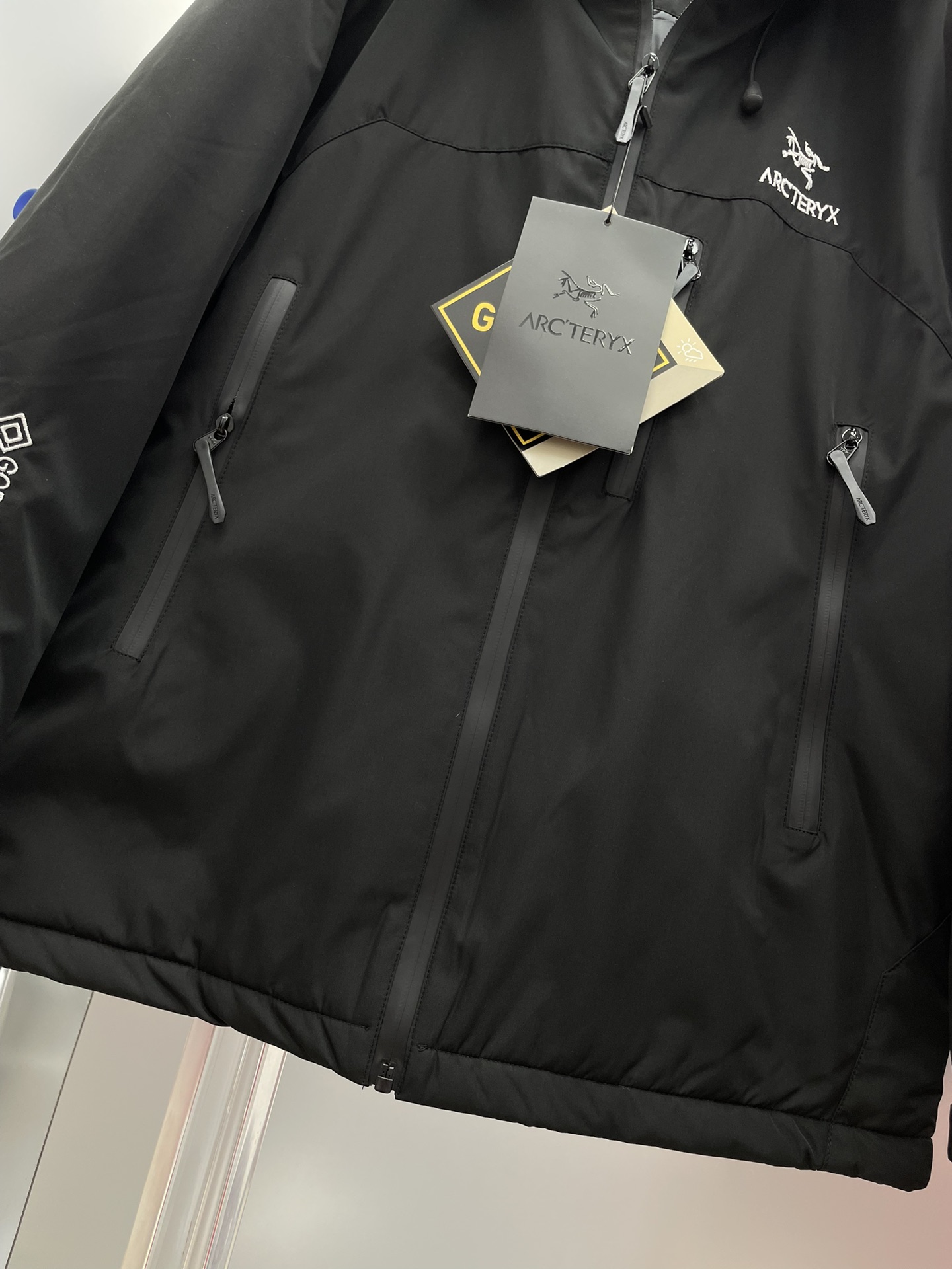 这款衣服是AAAAA 1:1 质量 (非常棒). 使用了和原版一模一样的材料. 商标部分也保持了和ARC'TERYX一样. 图片拍摄是实物衣服拍摄, 您所收到的实物保证和我们图片一模一样.