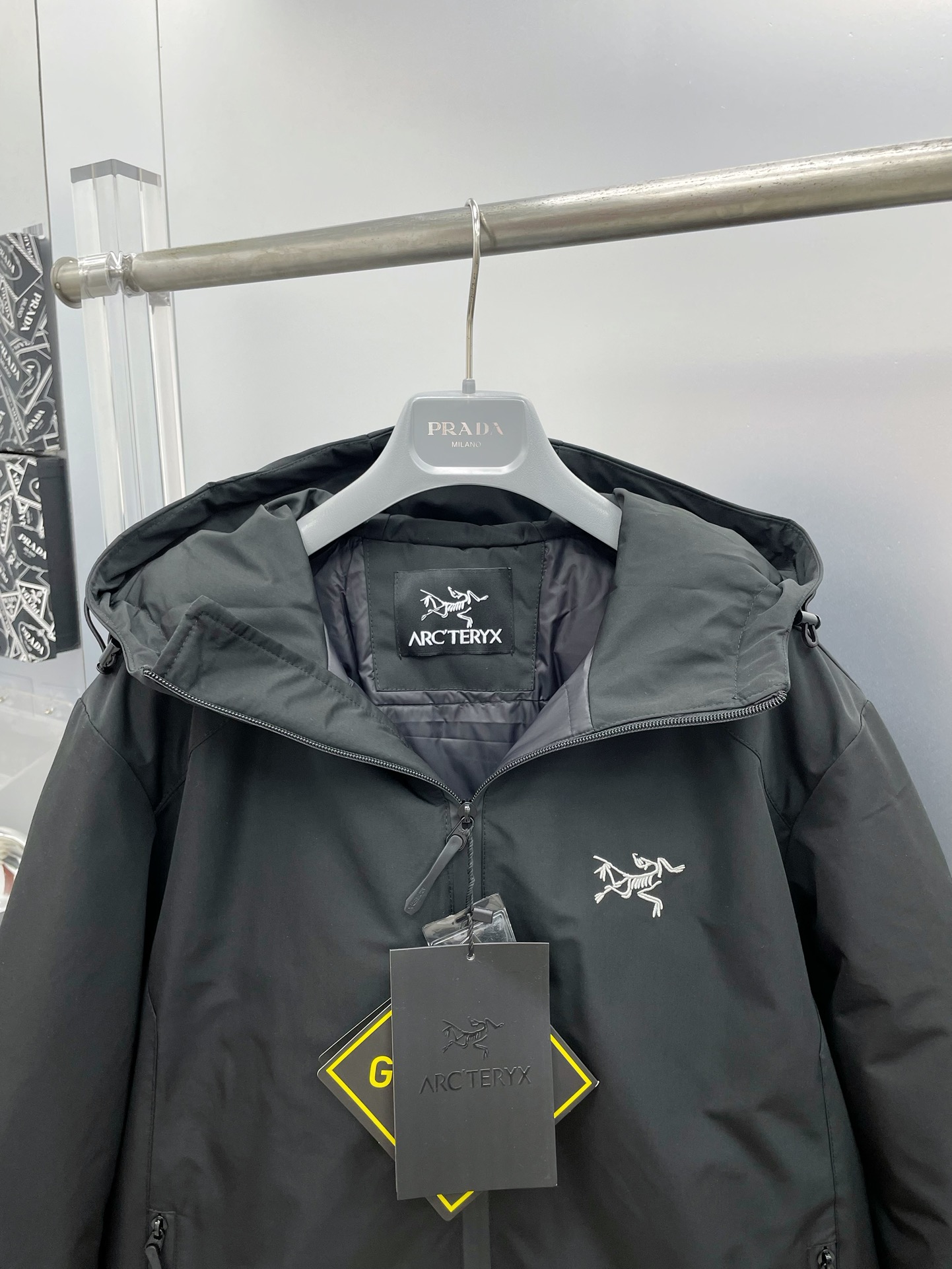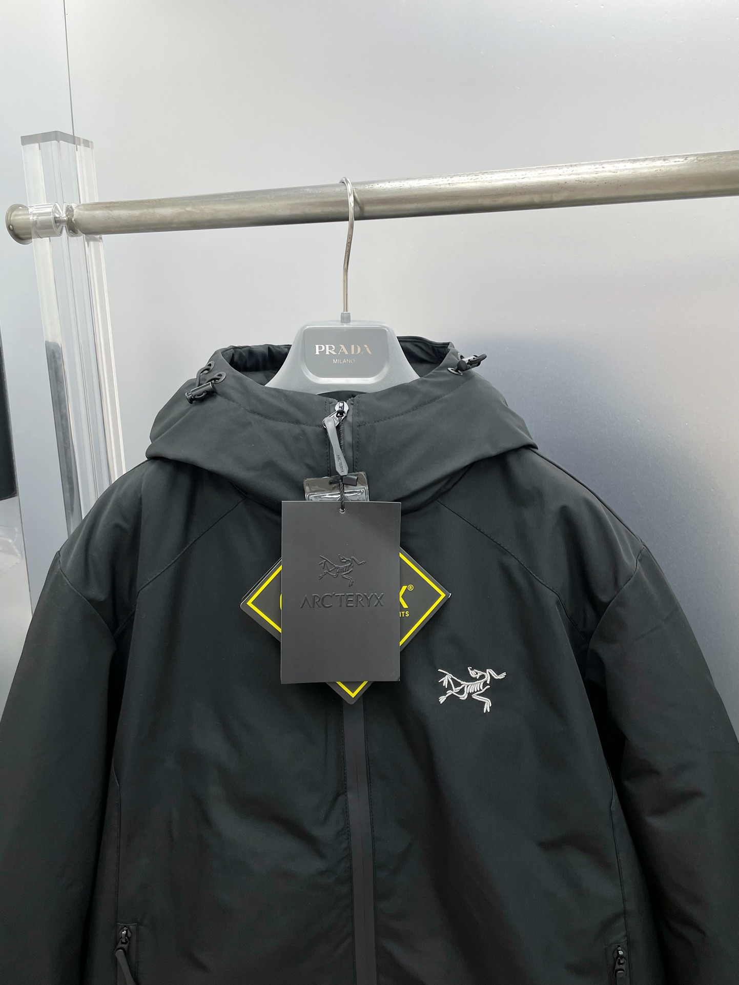 这款衣服是AAAAA 1:1 质量 (非常棒). 使用了和原版一模一样的材料. 商标部分也保持了和ARC'TERYX一样. 图片拍摄是实物衣服拍摄, 您所收到的实物保证和我们图片一模一样.
