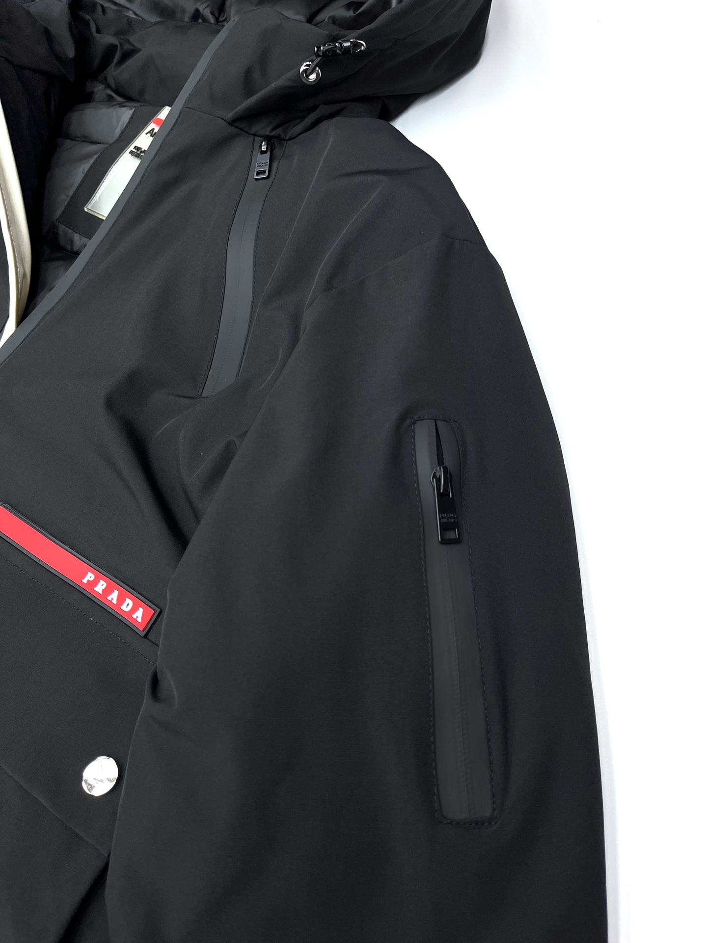 这款衣服是AAAAA 1:1 质量 (非常棒). 使用了和原版一模一样的材料. 商标部分也保持了和普拉达/Prada一样. 图片拍摄是实物衣服拍摄, 您所收到的实物保证和我们图片一模一样.