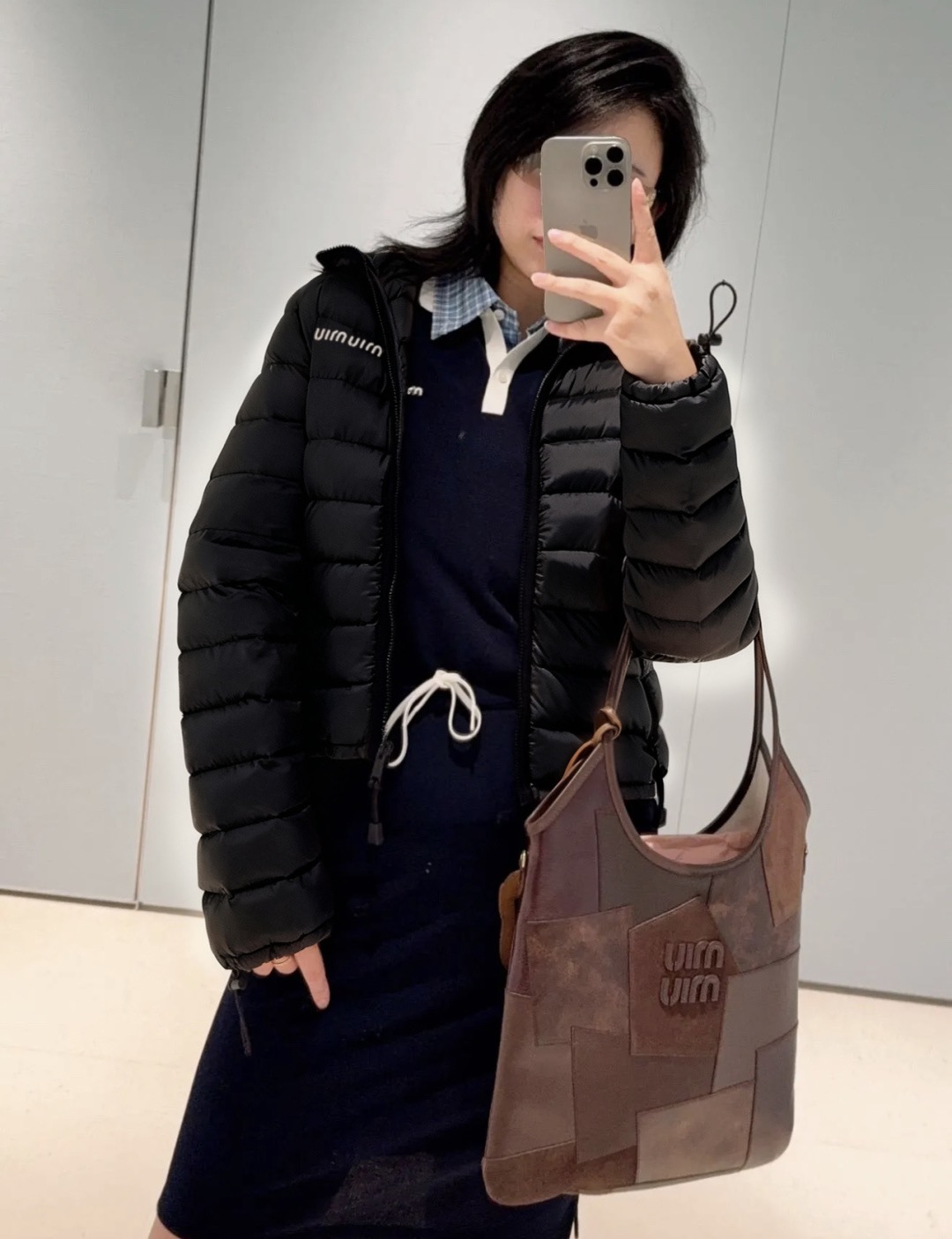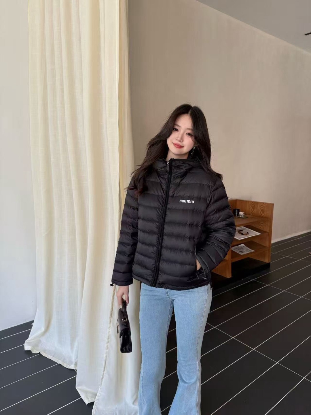 这款衣服是AAAAA 1:1 质量 (非常棒). 使用了和原版一模一样的材料. 商标部分也保持了和缪缪/Miu Miu一样. 图片拍摄是实物衣服拍摄, 您所收到的实物保证和我们图片一模一样.