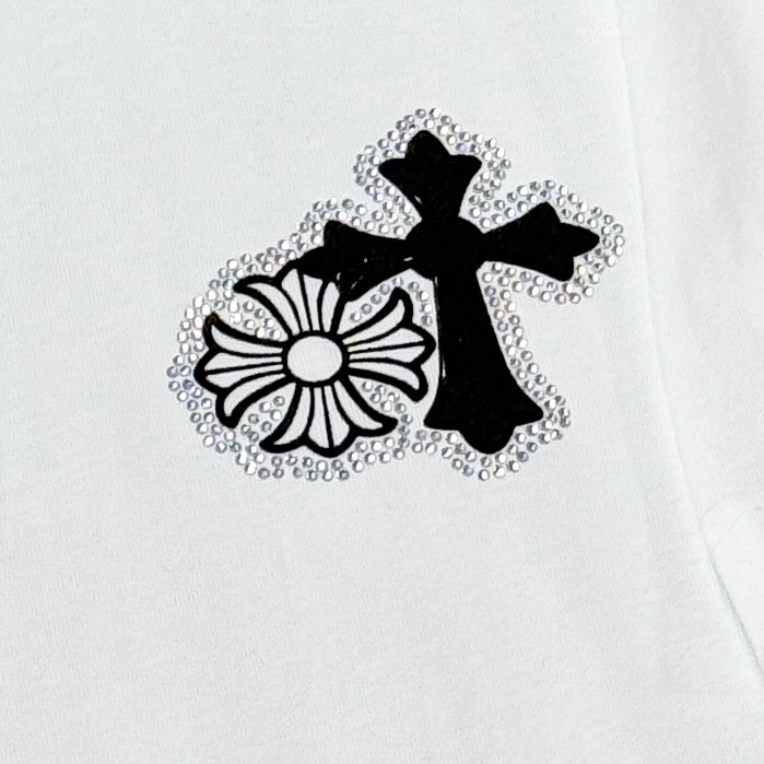 这款衣服是AAAAA 1:1 质量 (非常棒). 使用了和原版一模一样的材料. 商标部分也保持了和克罗心/Chrome Hearts一样. 图片拍摄是实物衣服拍摄, 您所收到的实物保证和我们图片一模一样.